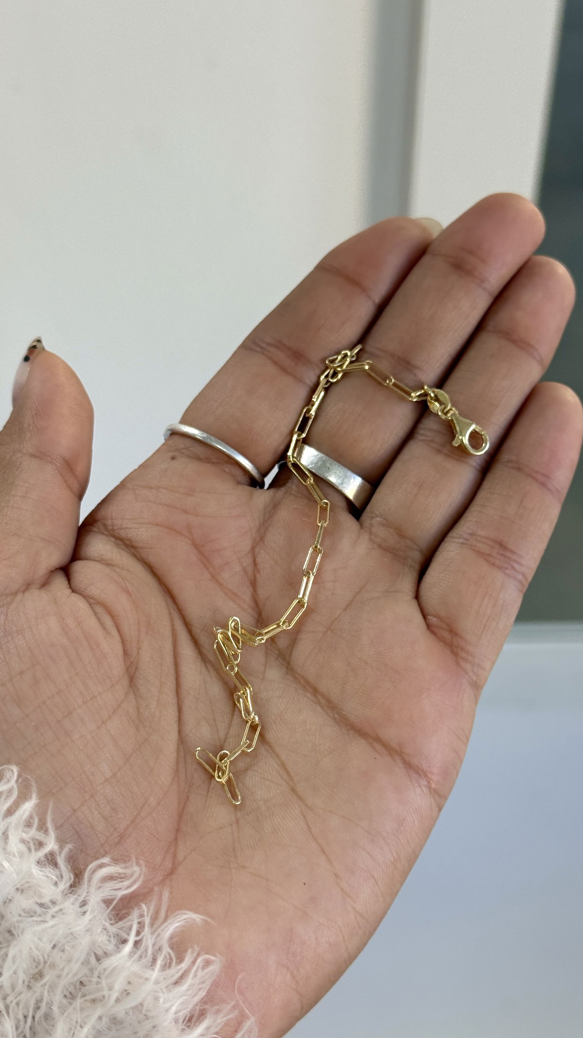 Pulsera eslabones rectangulares plata con baño de oro 18k, 19cm.