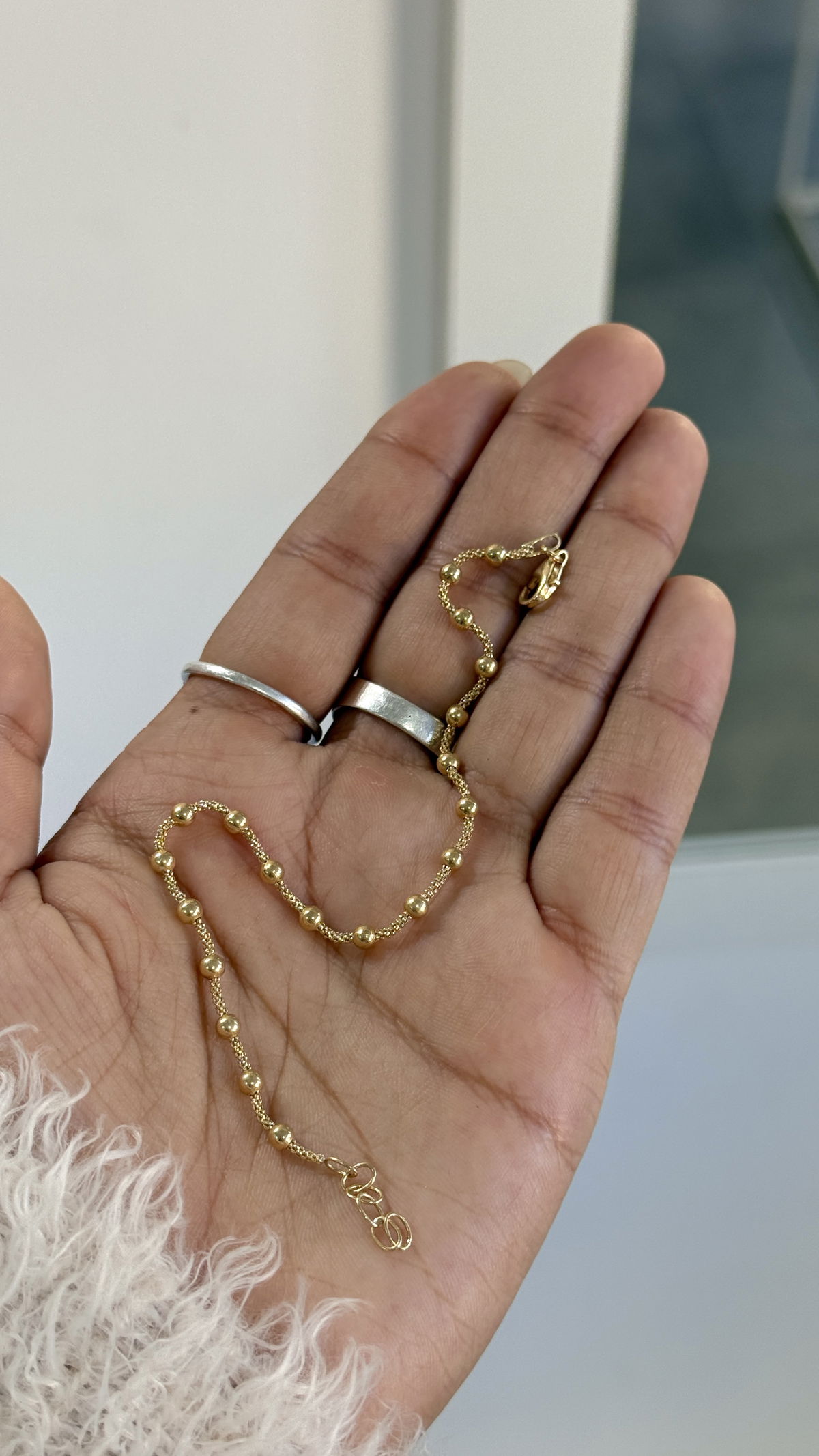 Pulsera tejida bolitas gruesas plata con baño de oro 18k, 20cm.