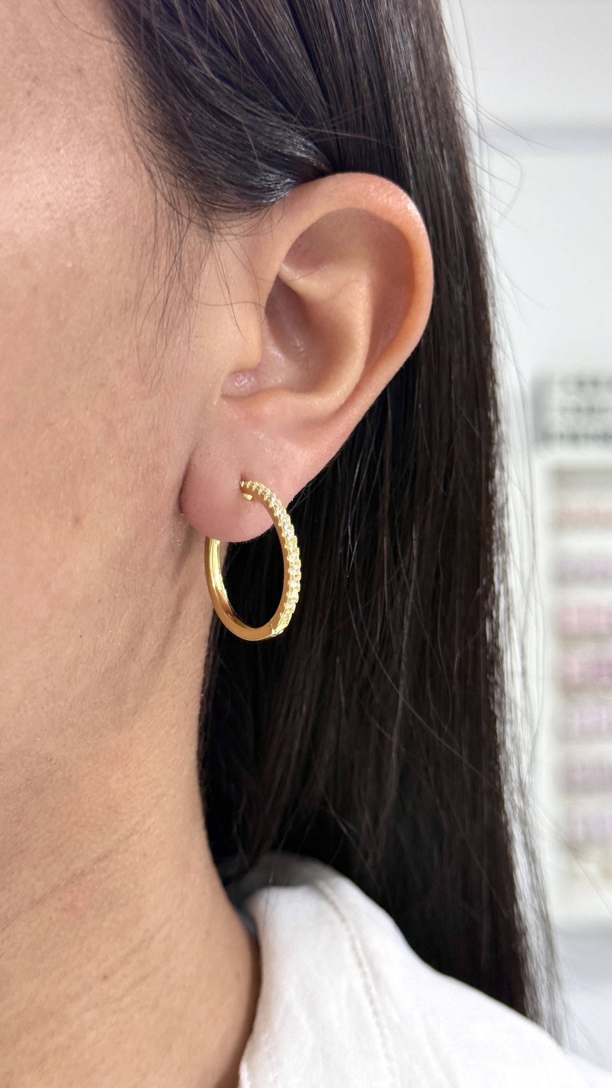 Argolla Huggies 2,5cm cúbics plata con baño de oro.