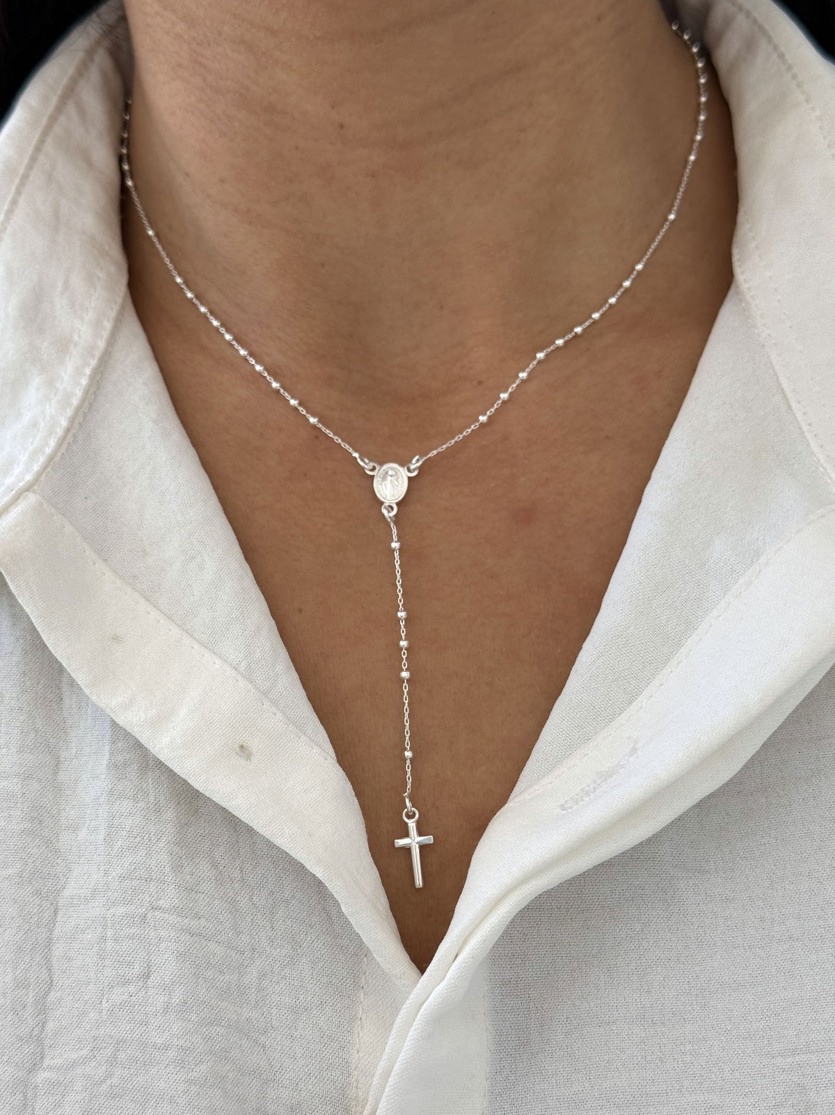 Rosario mini bolitas plata925 de la Medalla Milagrosa.