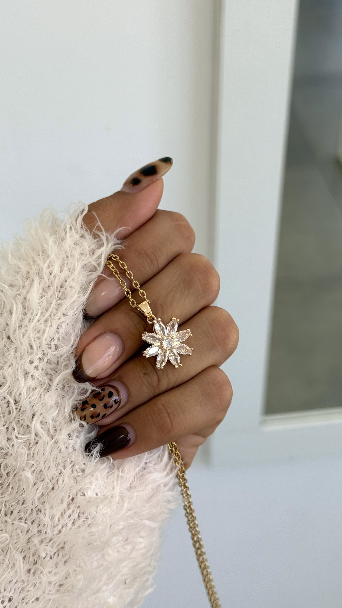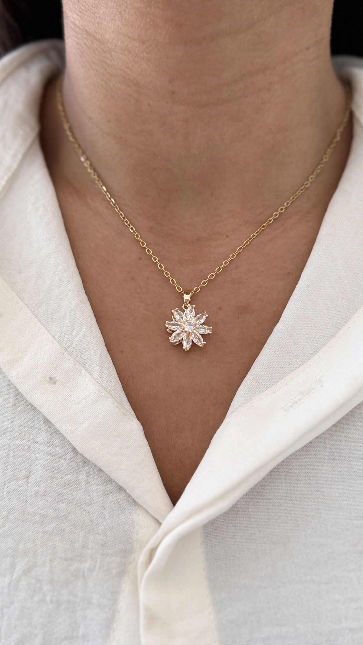 Collar flor giratorio acero dorado, 45cm.