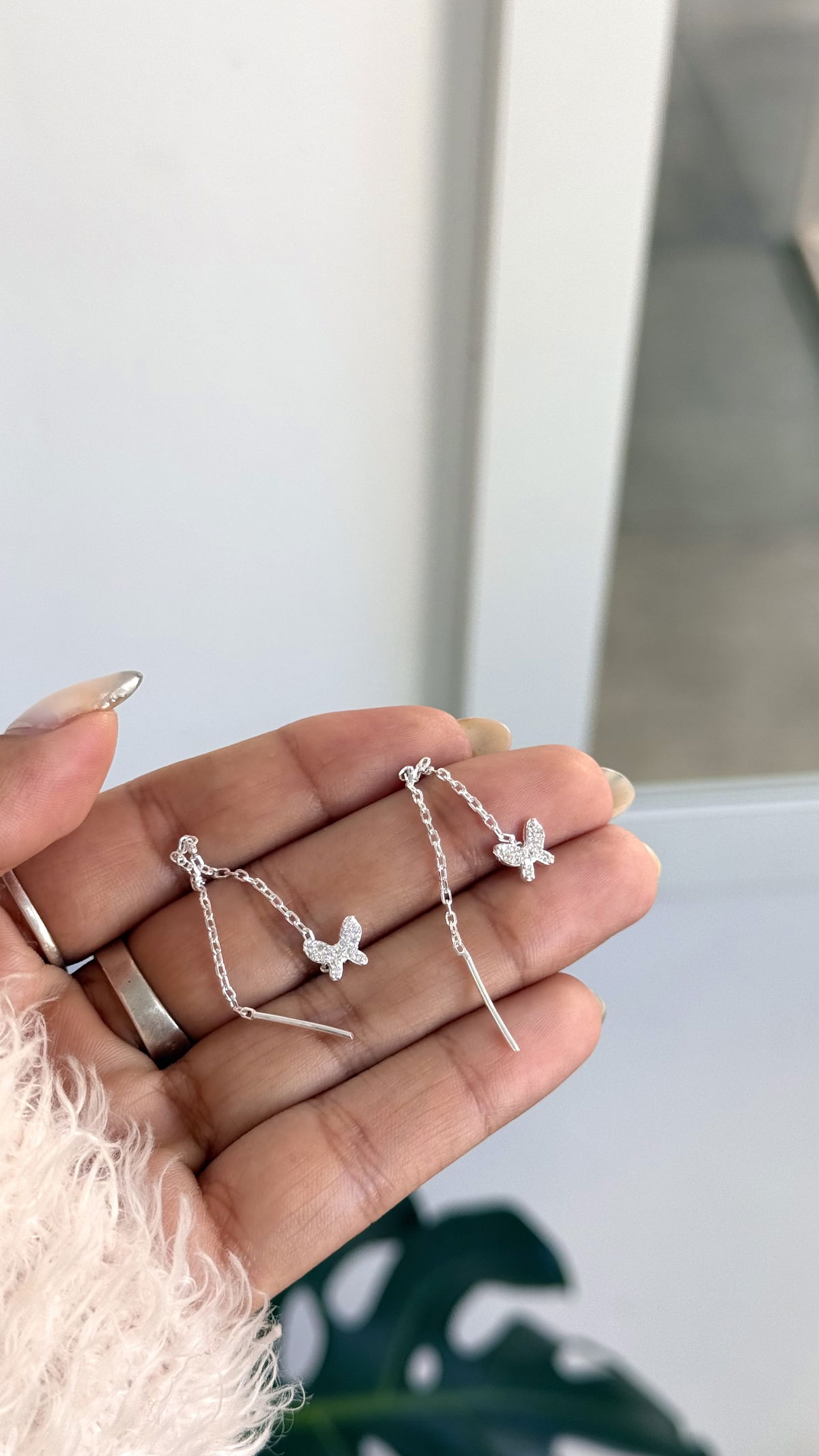Aro tipo aguja pasante colgante con mariposa plata925.