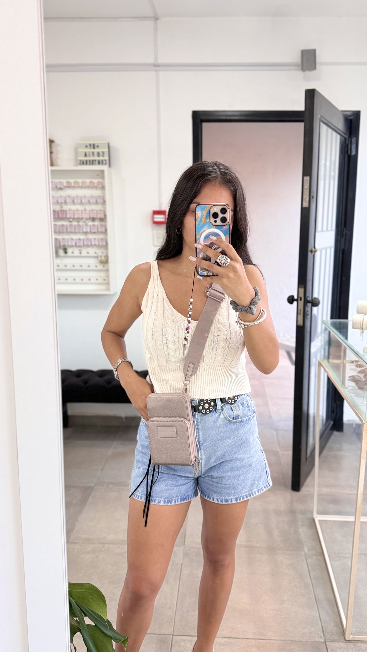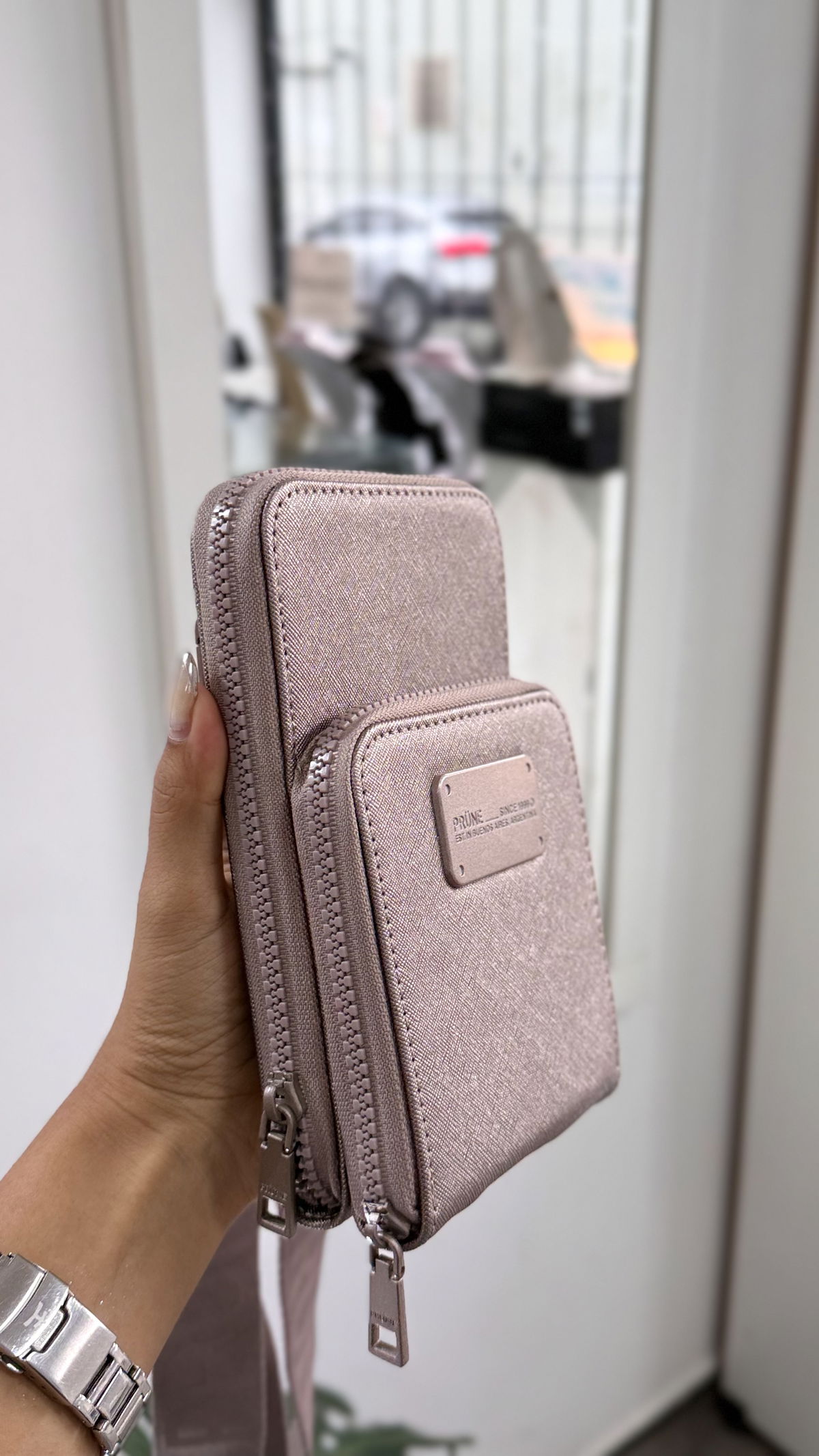 Porta celular prune doble cierre con correa desmontable 18x11.
