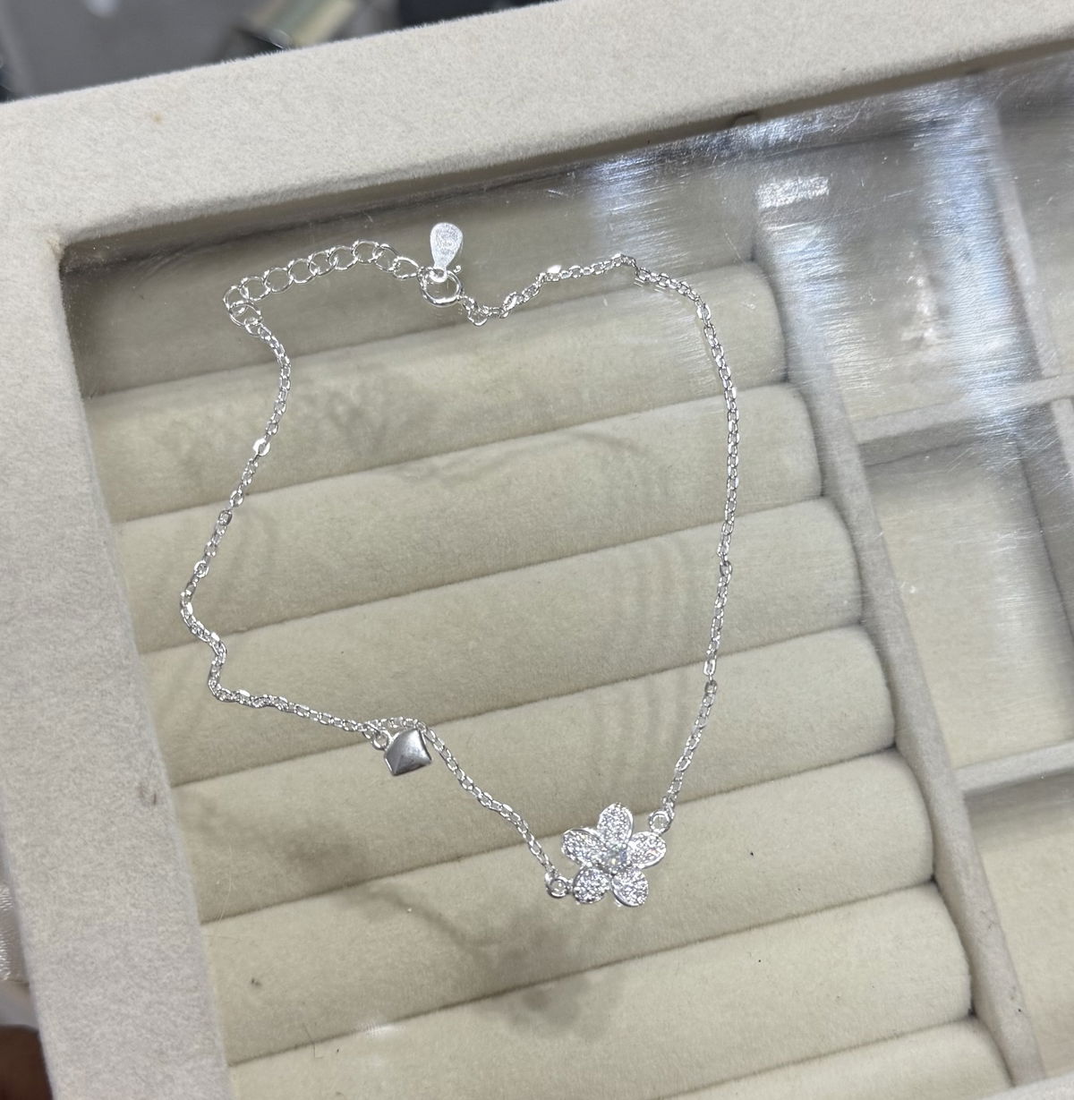 Tobillera flor plata925, 25cm.