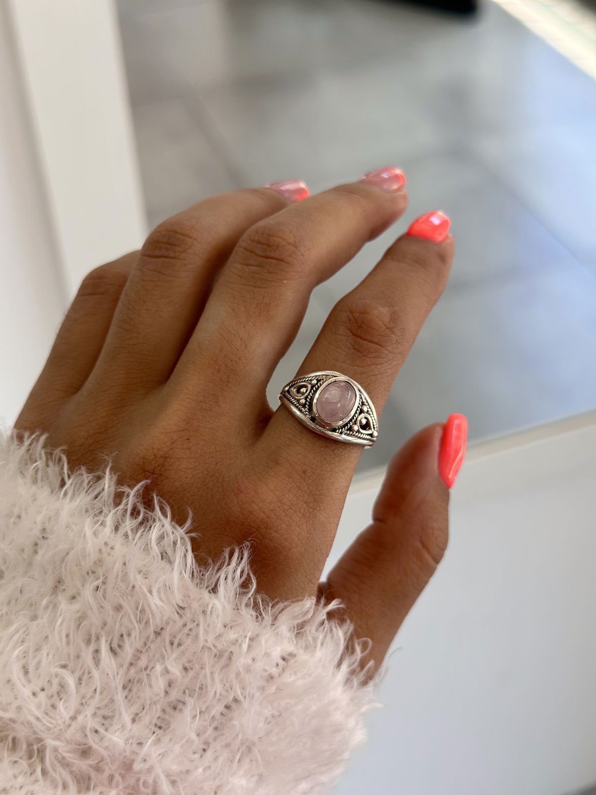 Anillo piedra cuarzo rosa plata925.