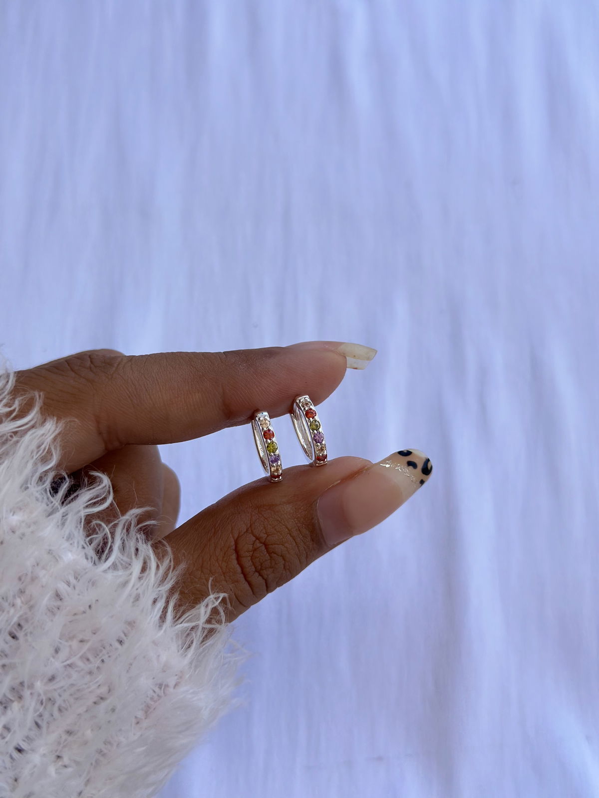 Argollas 1,3cm cierre Huggies cubics colores plata925.