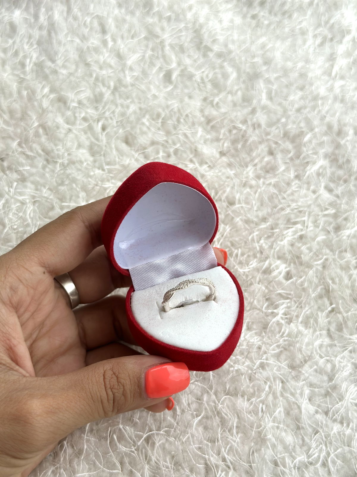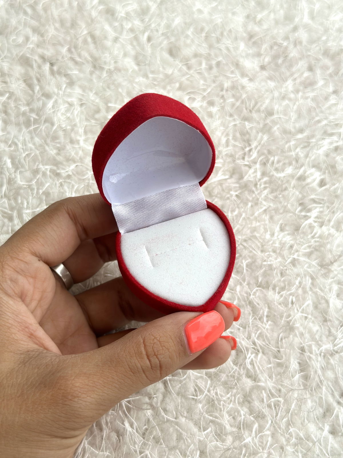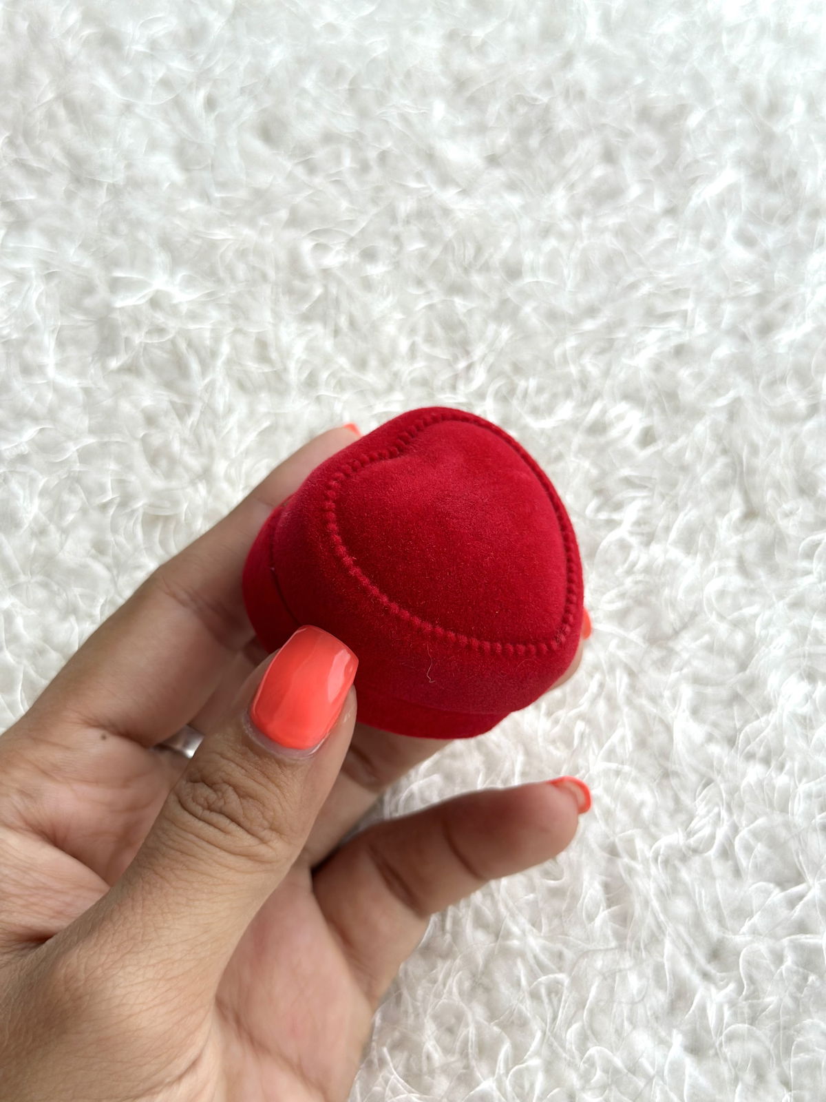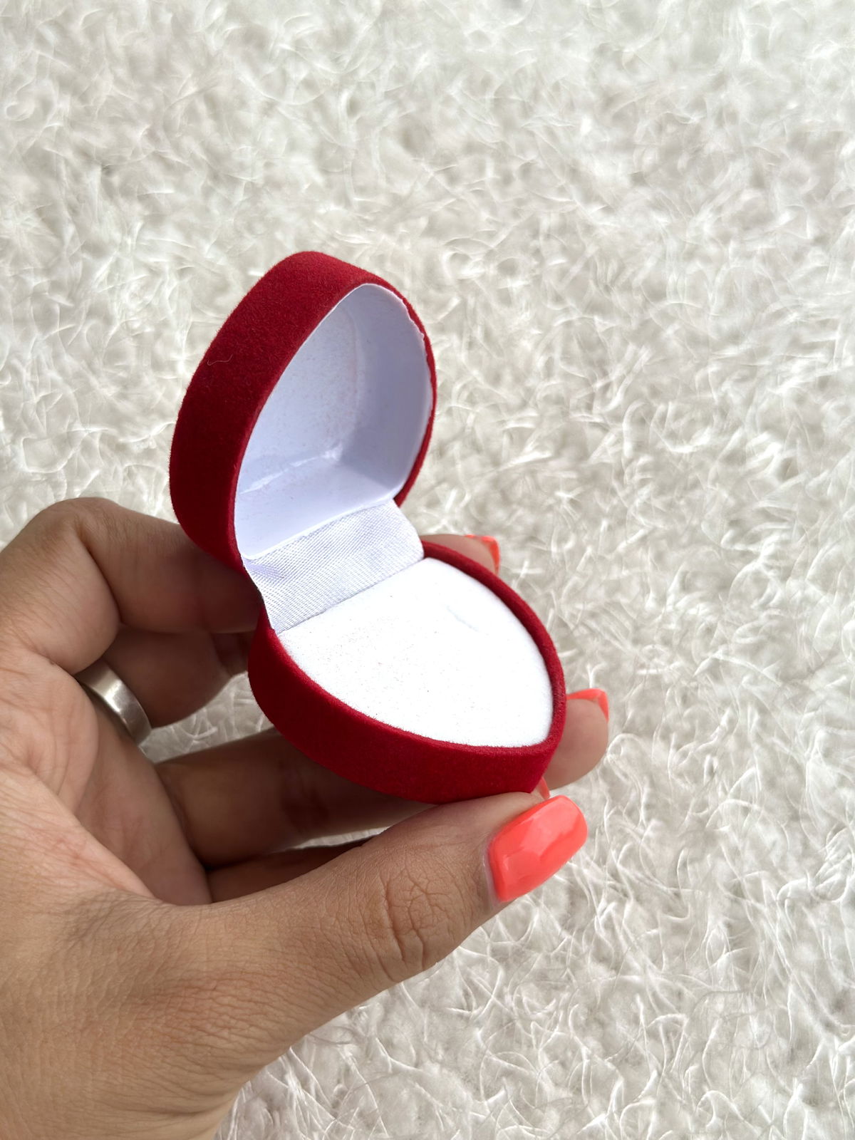 Estuche corazón de pana para anillos. (No incluye anillo de la foto).