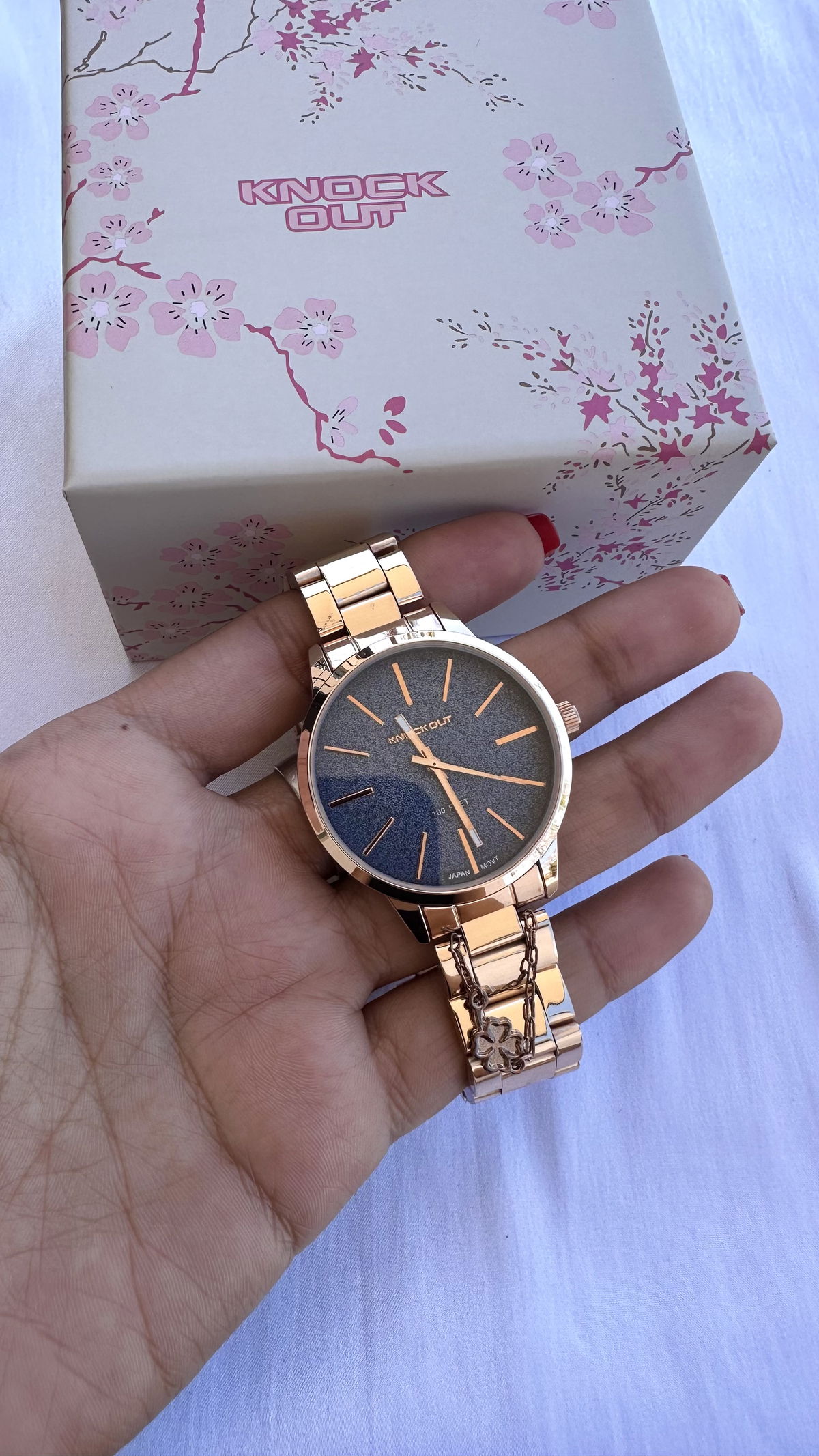 Reloj Knock out malla metal rose, fondo Glitter resistente a salpicaduras.