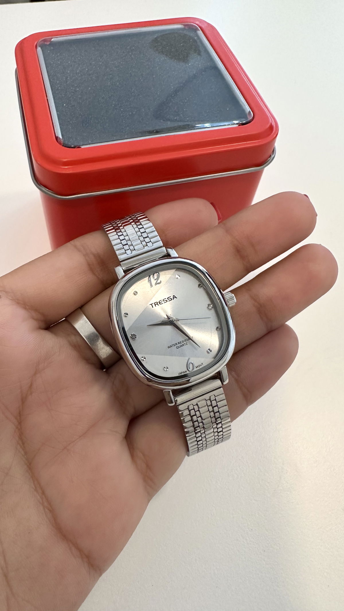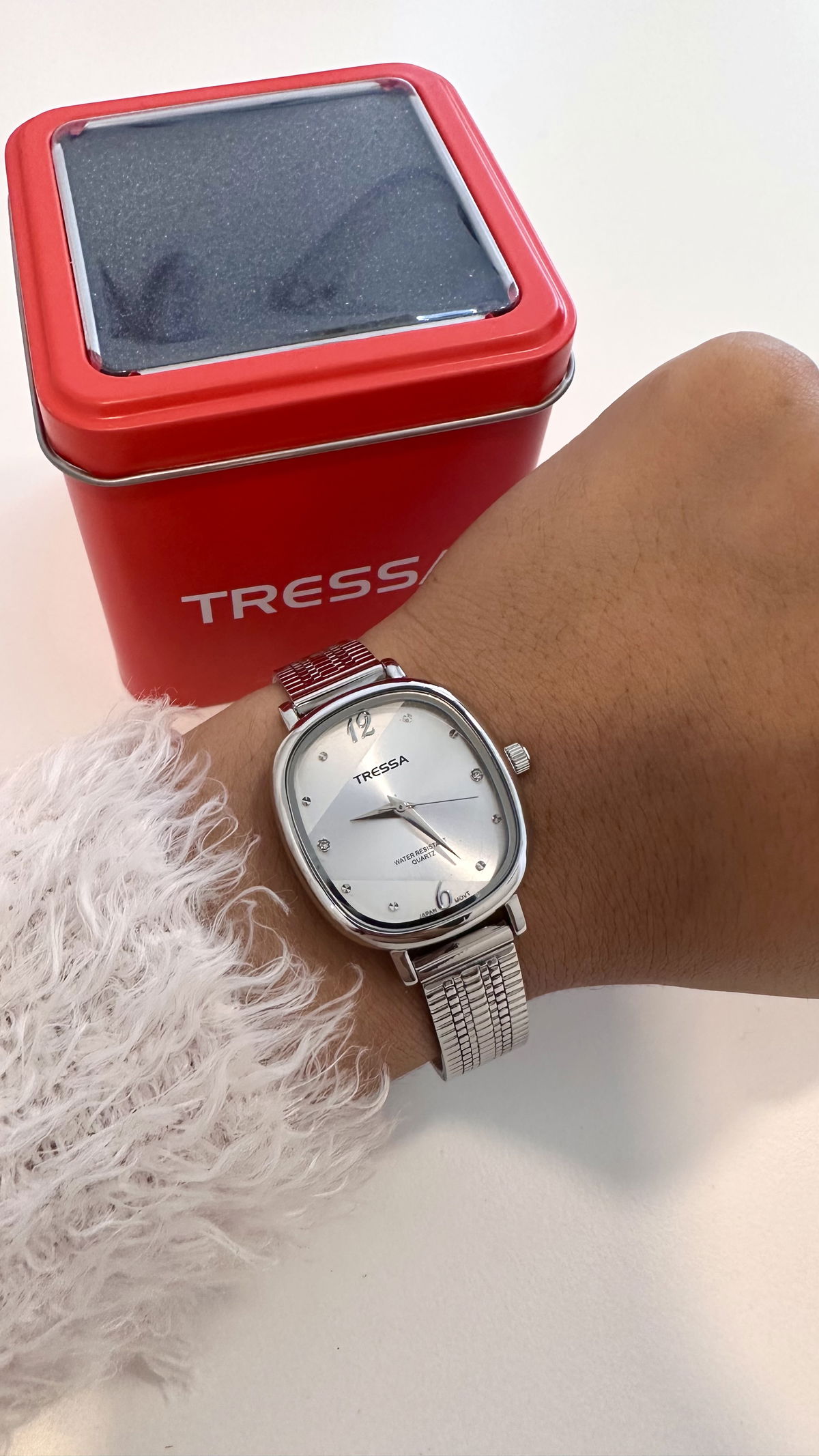 Reloj malla tejida ajustable metal, resistente a salpicaduras Tressa.