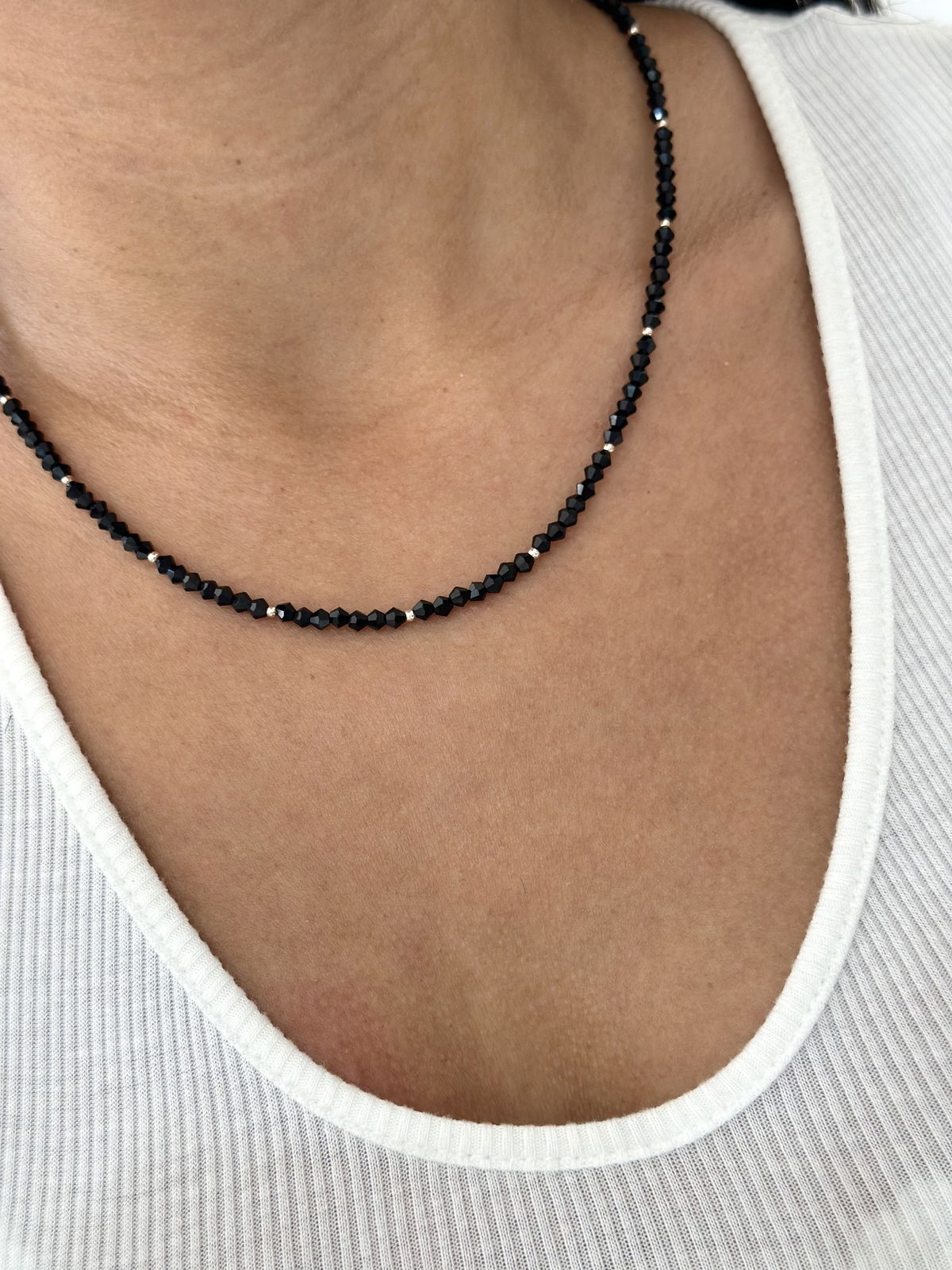 Gargantilla 45cm cristales negros plata925.
