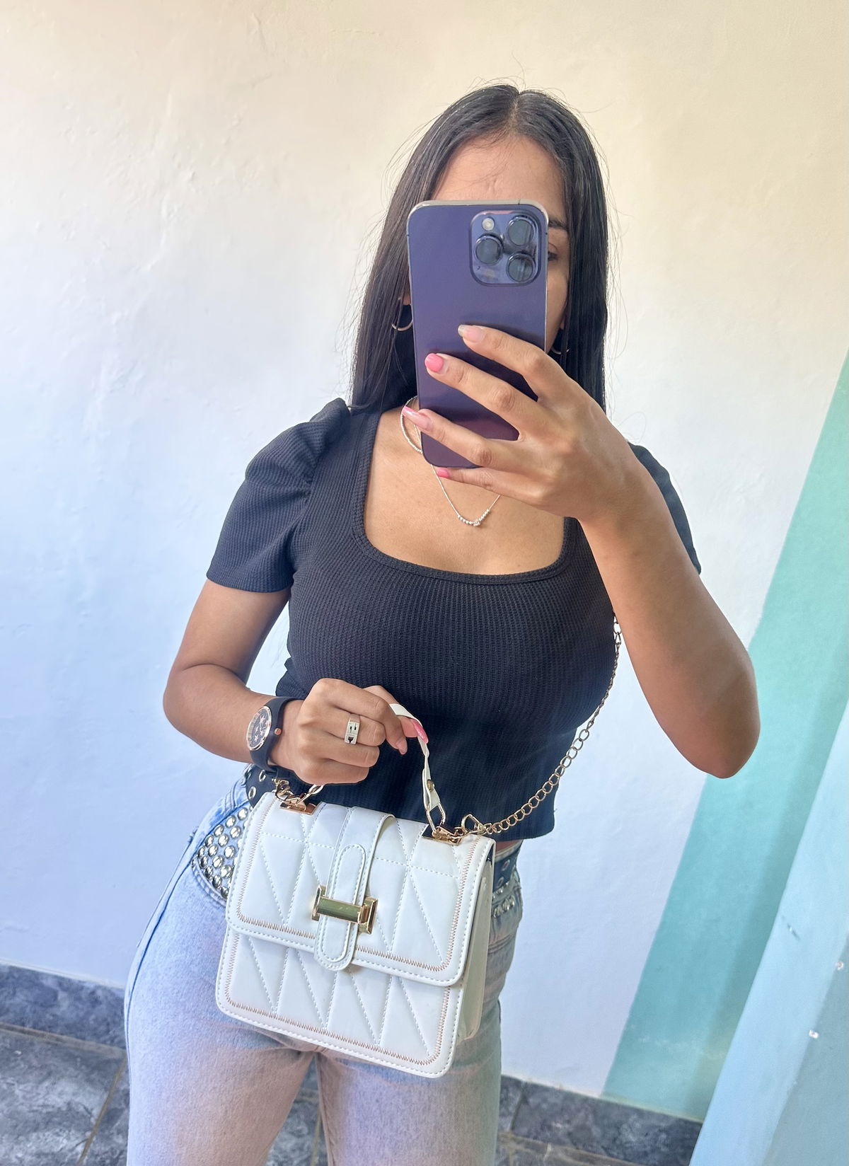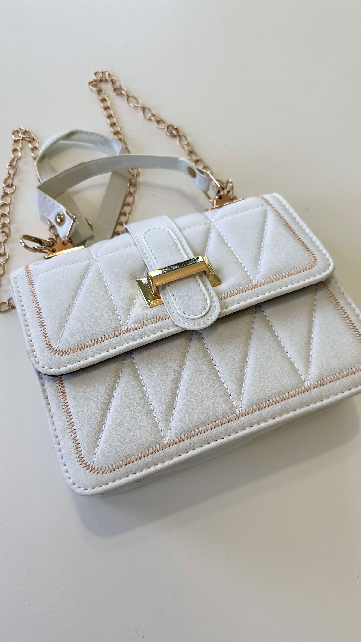 Mini Bags en cuero pu, con detalles en dorado, Correa Cadena desmontable 19x19.