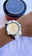 Reloj soho metal con malla eslabones plásticos blanco, resistente al agua.