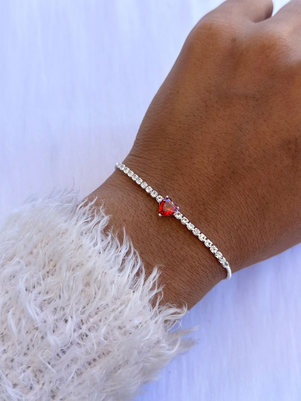 Pulsera strass con corazón rojo cubics acero blanco, 22cm.