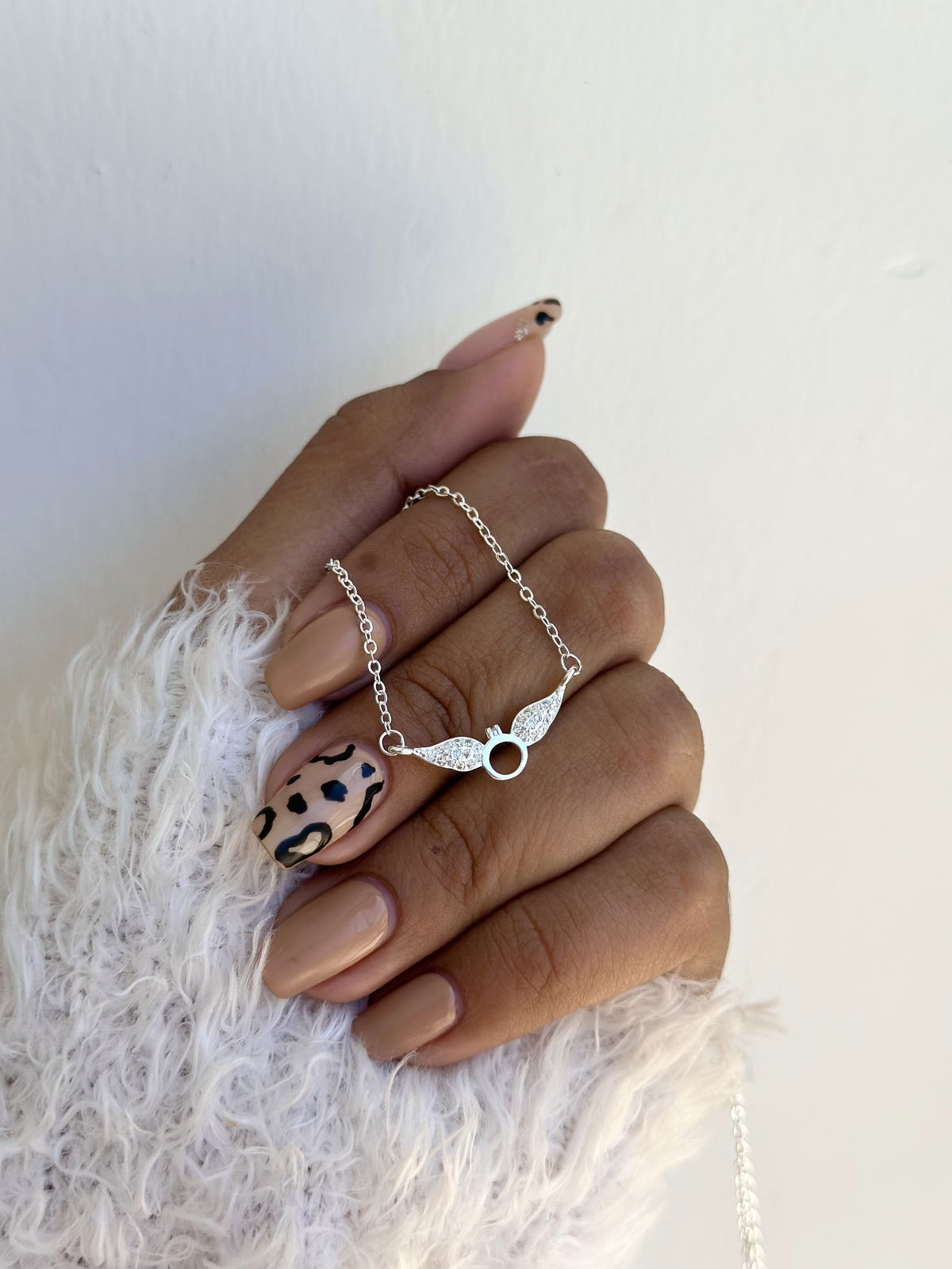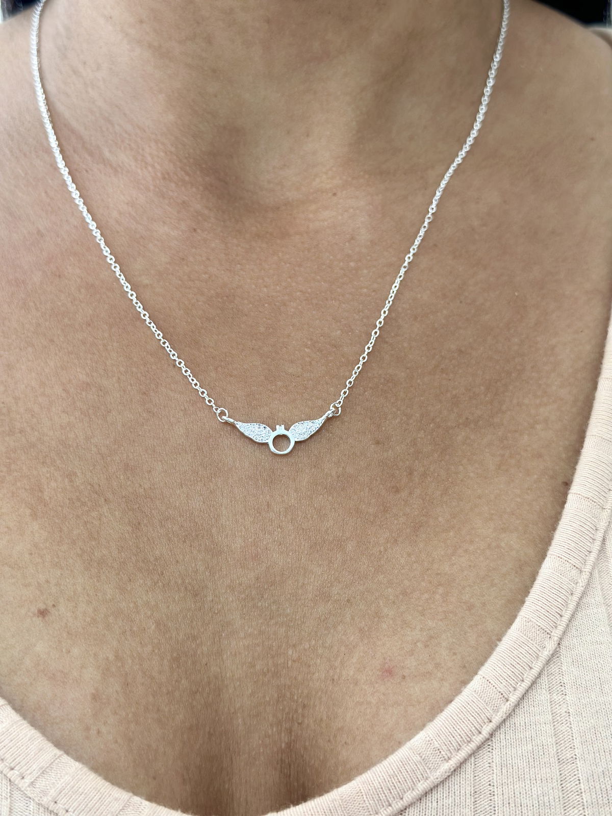 Gargantilla acero blanco cubics alitas 45cm.