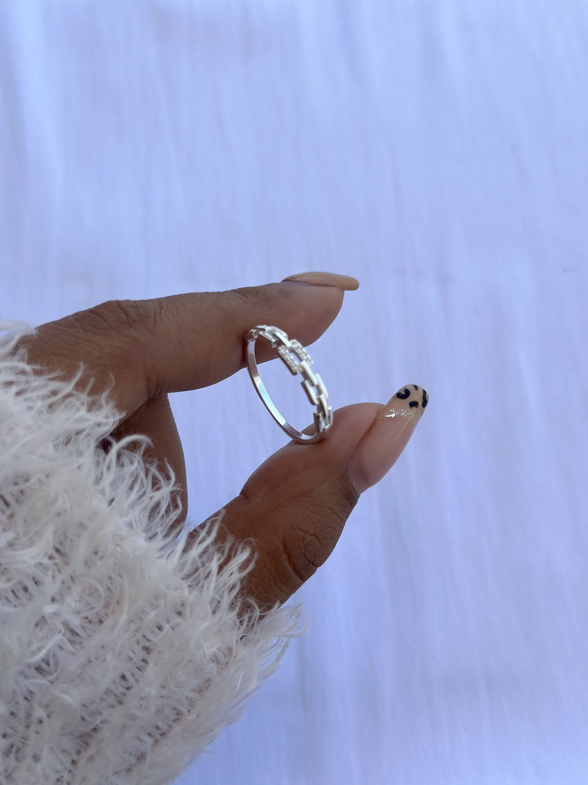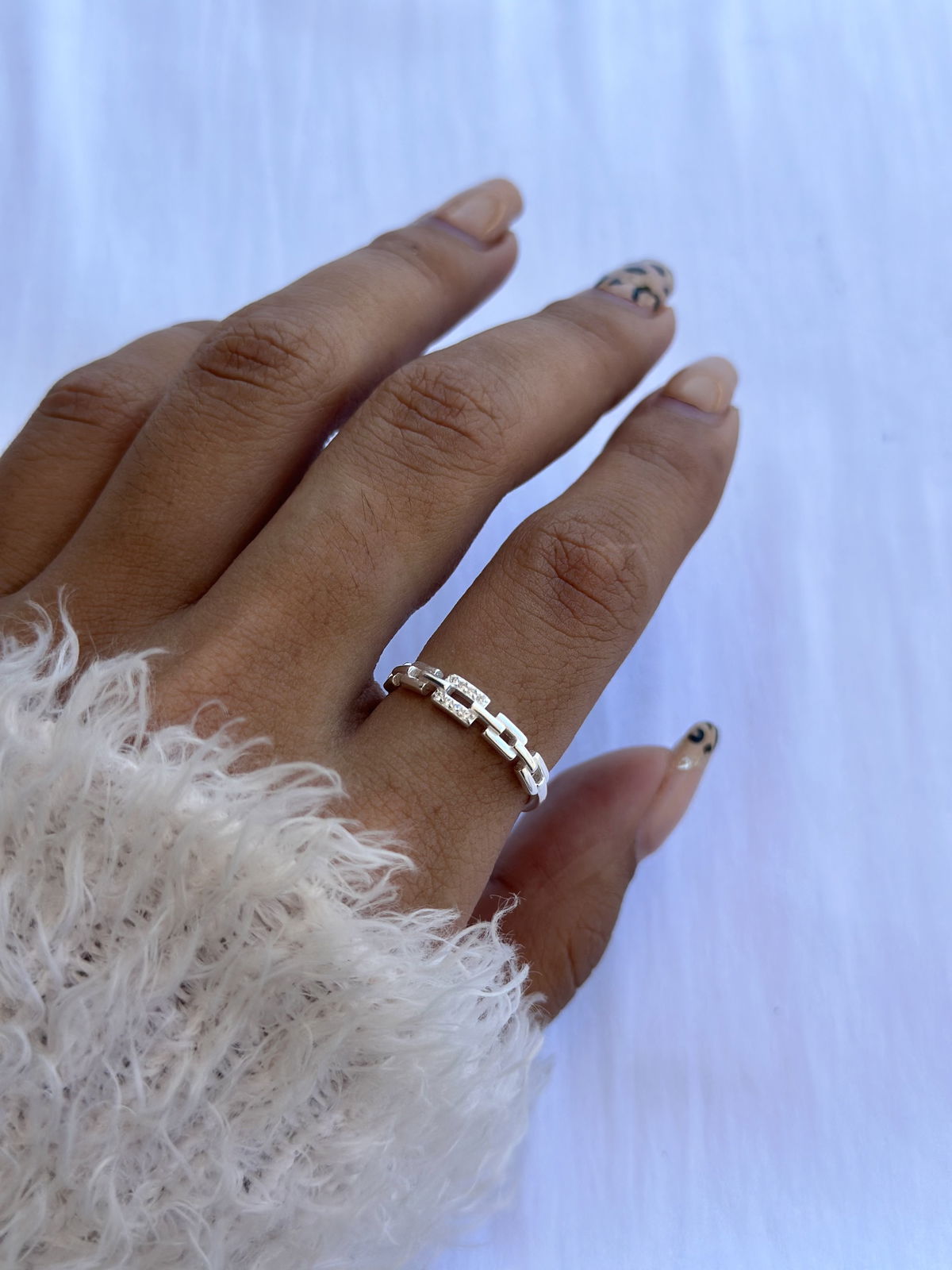 Anillo eslabones cuadrados con cubics plata925, 18mm.