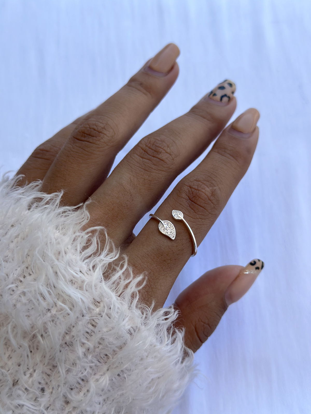 Anillo semi abierto hoja con micropave plata925.