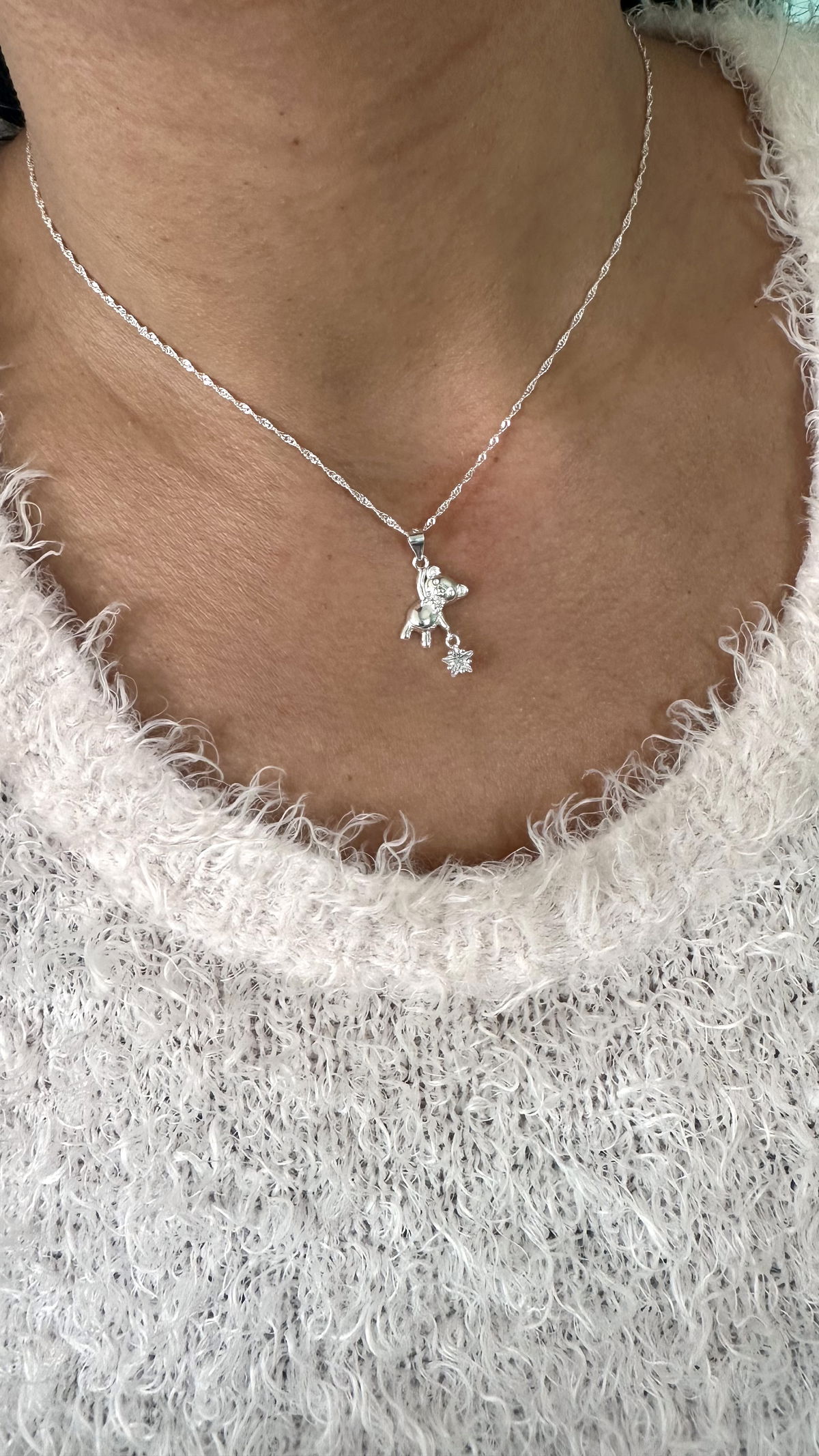 Conjunto Cadena Singapur con dije osito Plata925.