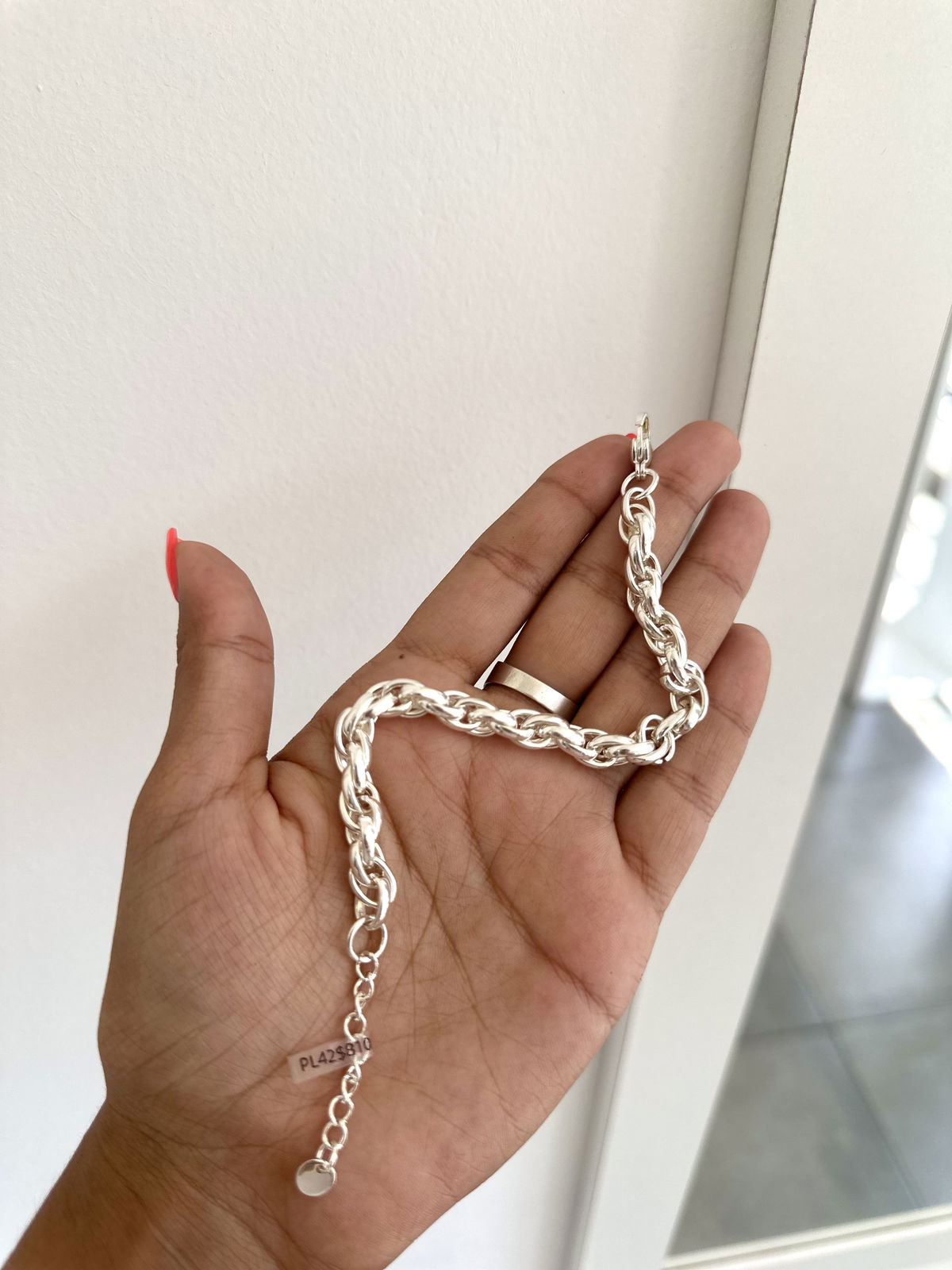 Pulsera eslabones entrelazados acero blanco 21cm.