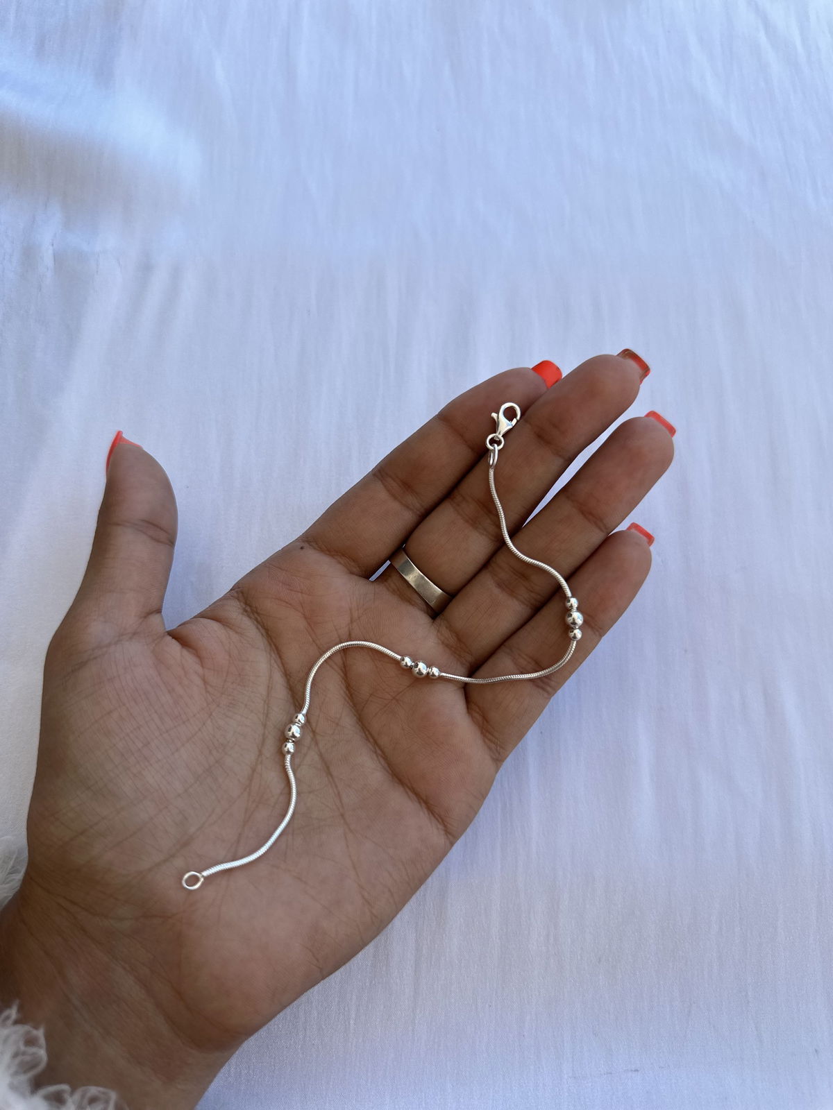 Pulsera cola de ratón con 3 bolitas plata926, medida 18cm.