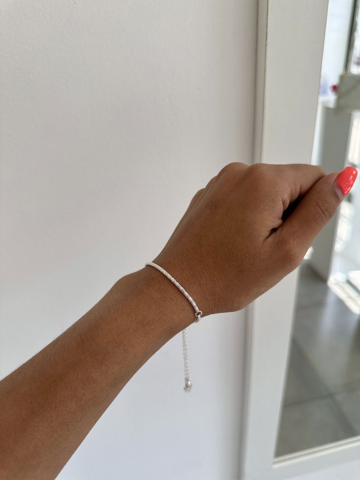 Pulsera tejida corbatero ajustable con dije cruz y estrella plata925.