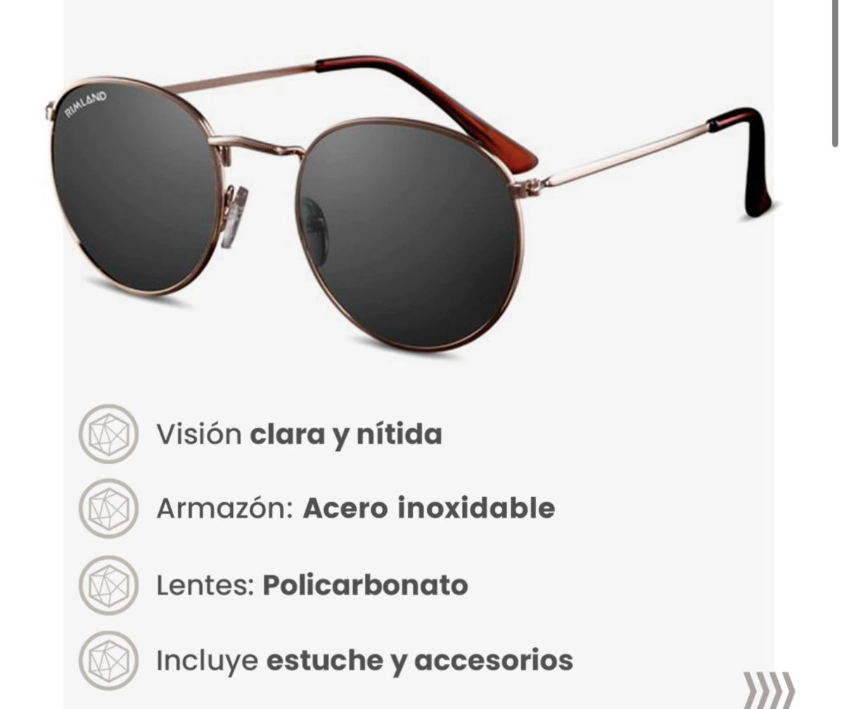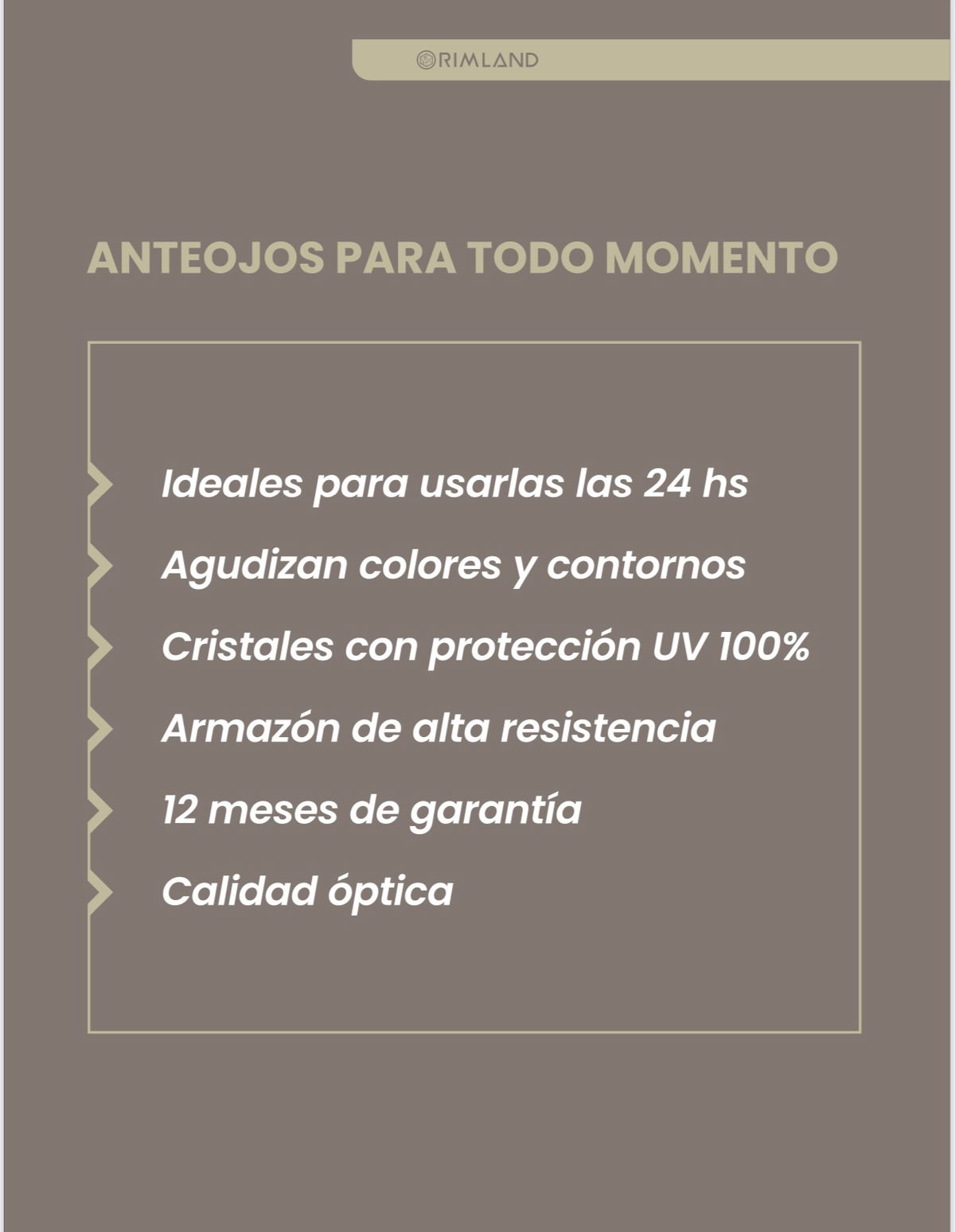 Anteojos con cristales de protección Uv, agudizan colores y contornos, armazón de alta resistencia, bordes de acero inoxidable, calidad óptica.