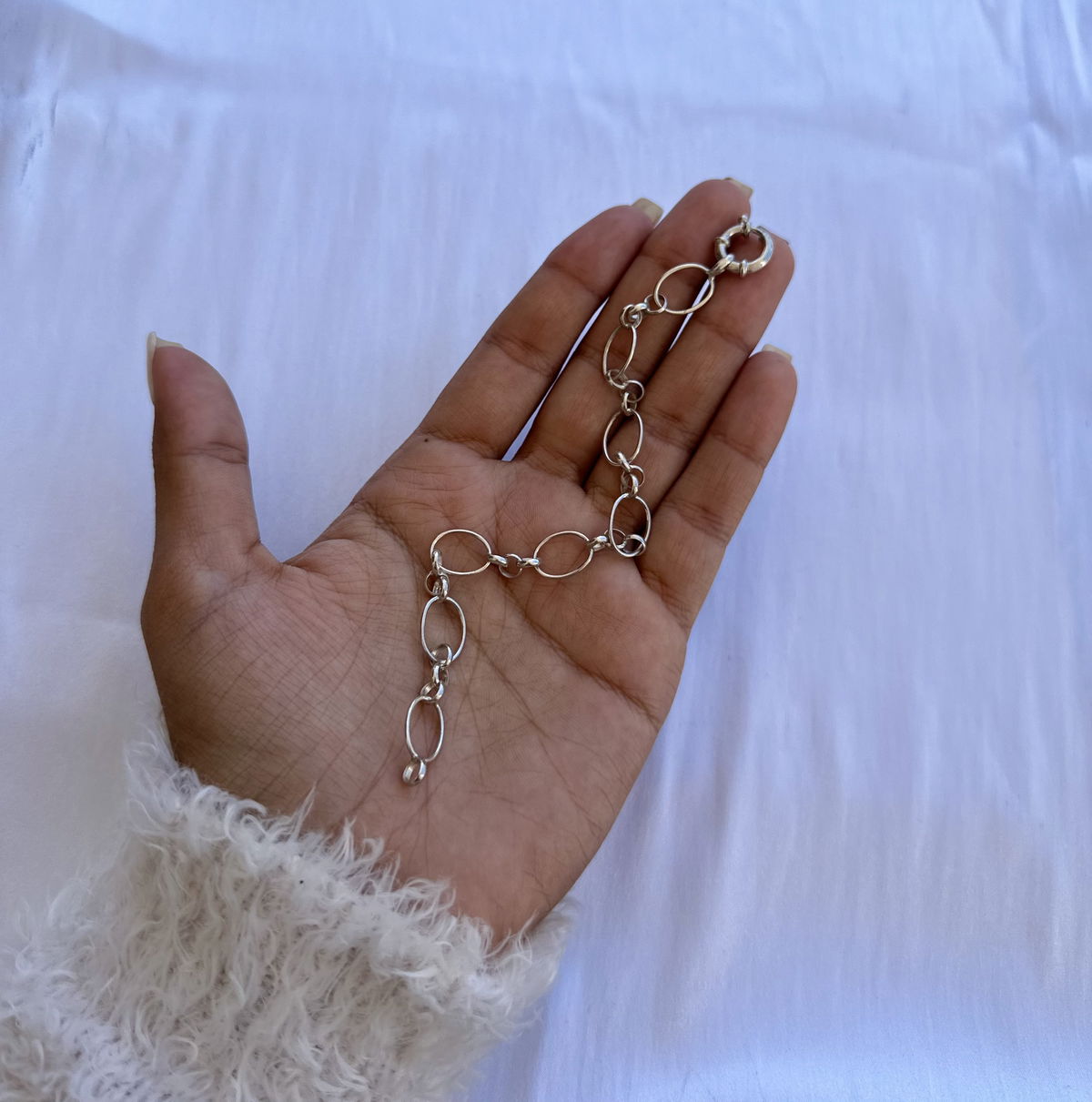 Pulsera ovalada con cierre marinero plata.