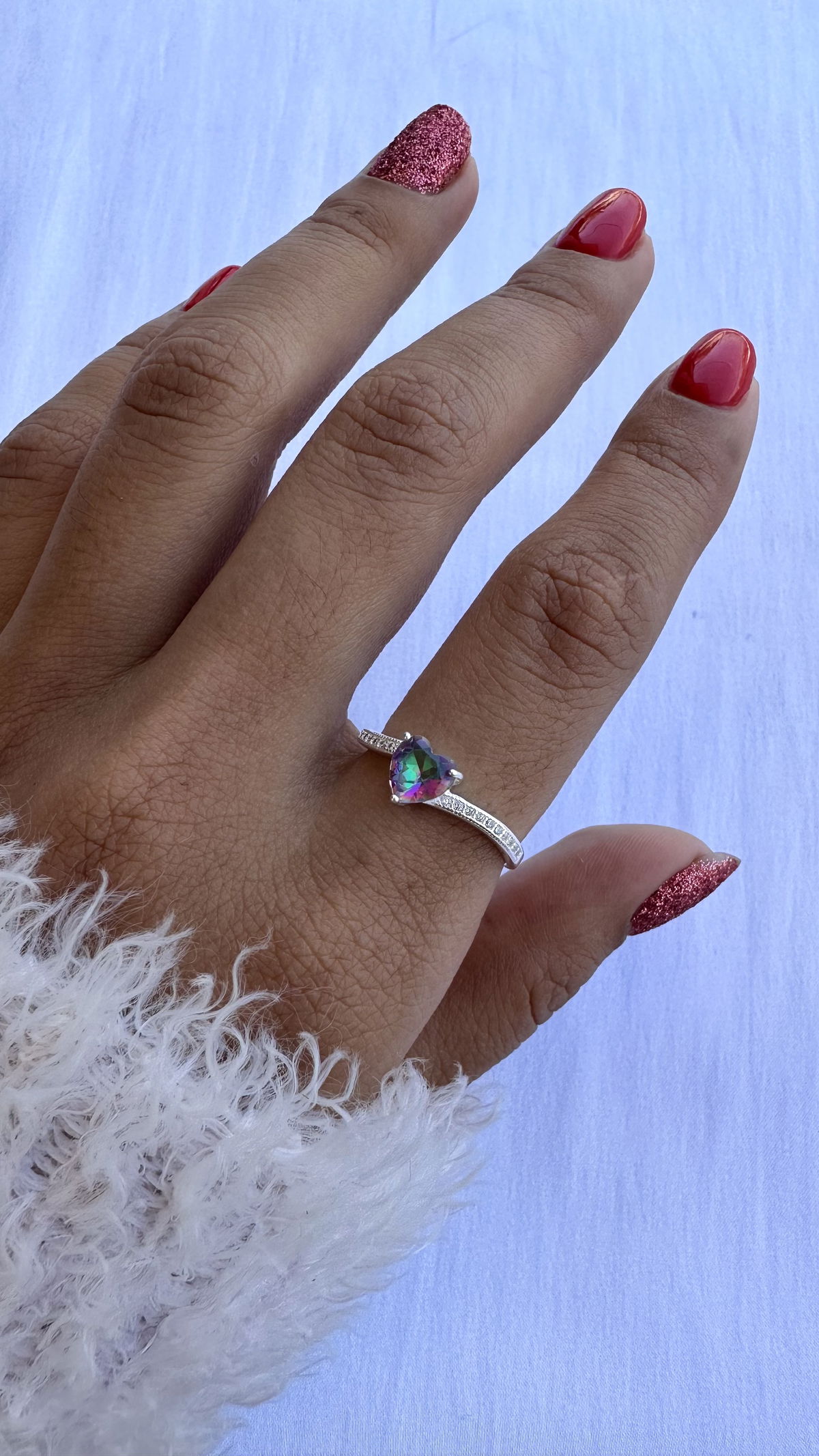 Anillo corazón cuarzo místico plata925, 17mm.