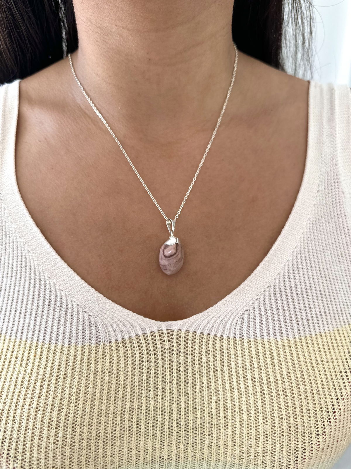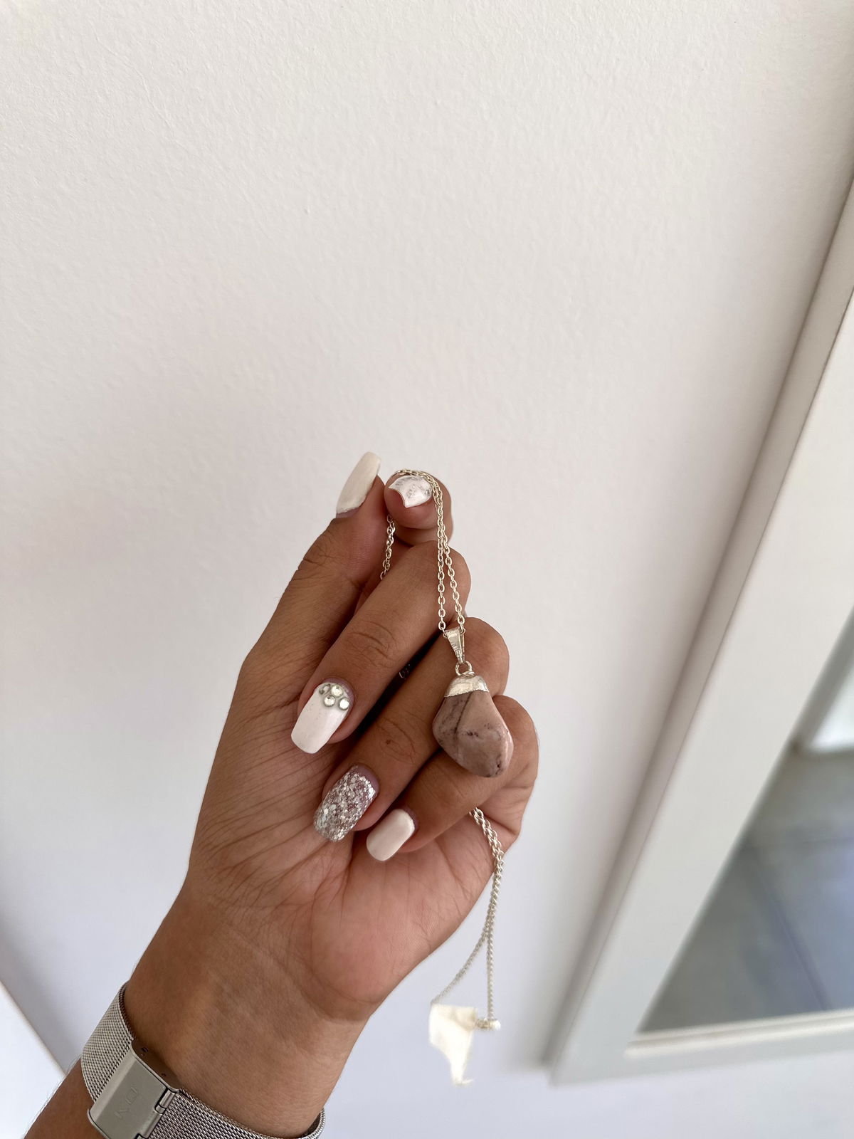 Collar acero blanco 45cm piedra jazpe.