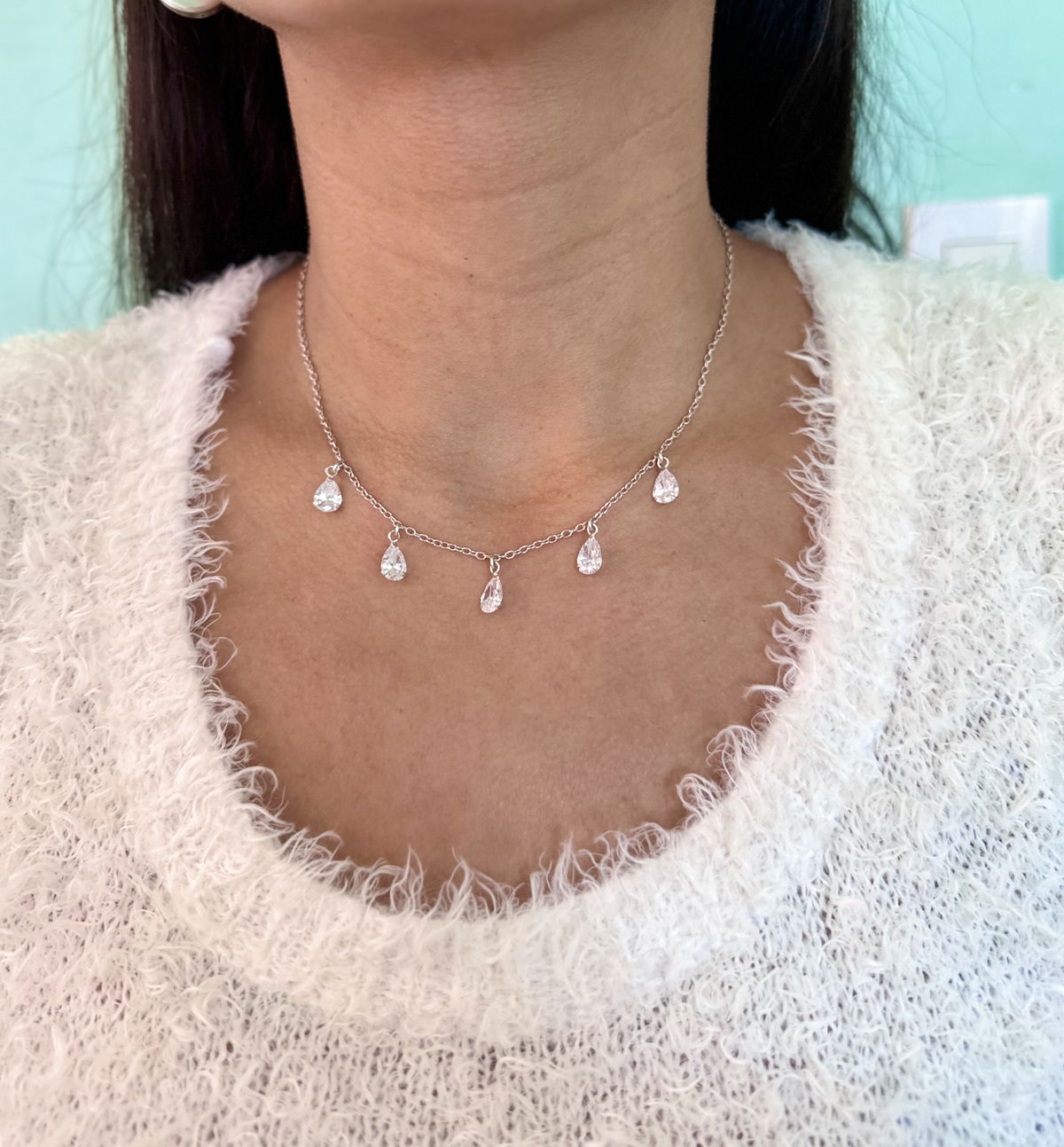 Gargantilla 45cm gotitas cubics plata925.