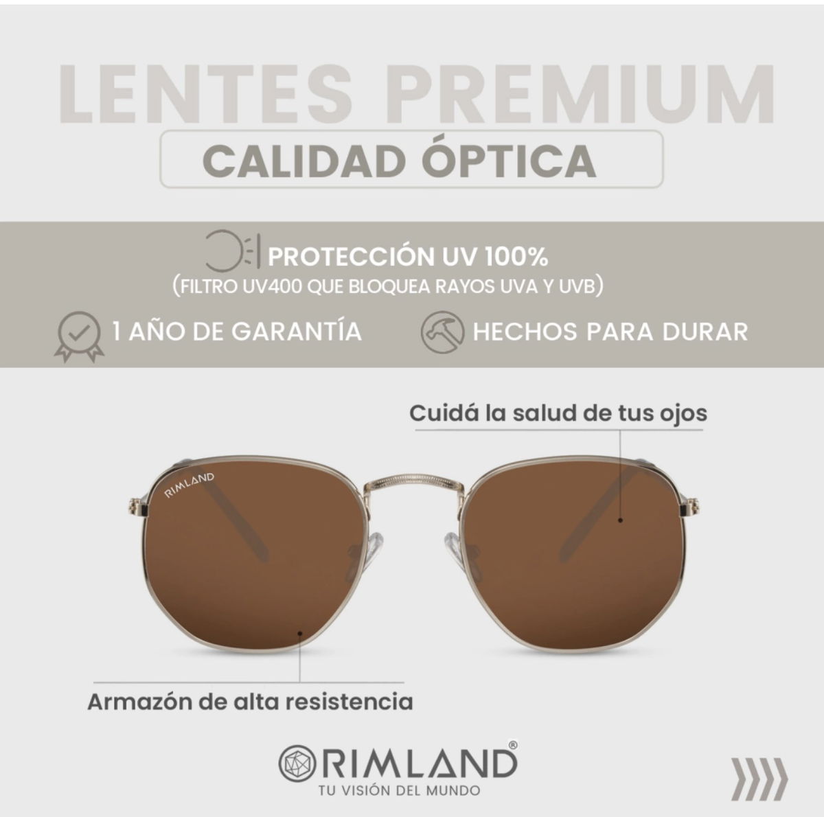 Anteojos con cristales de protección Uv, agudizan colores y contornos, armazón de alta resistencia, calidad óptica.