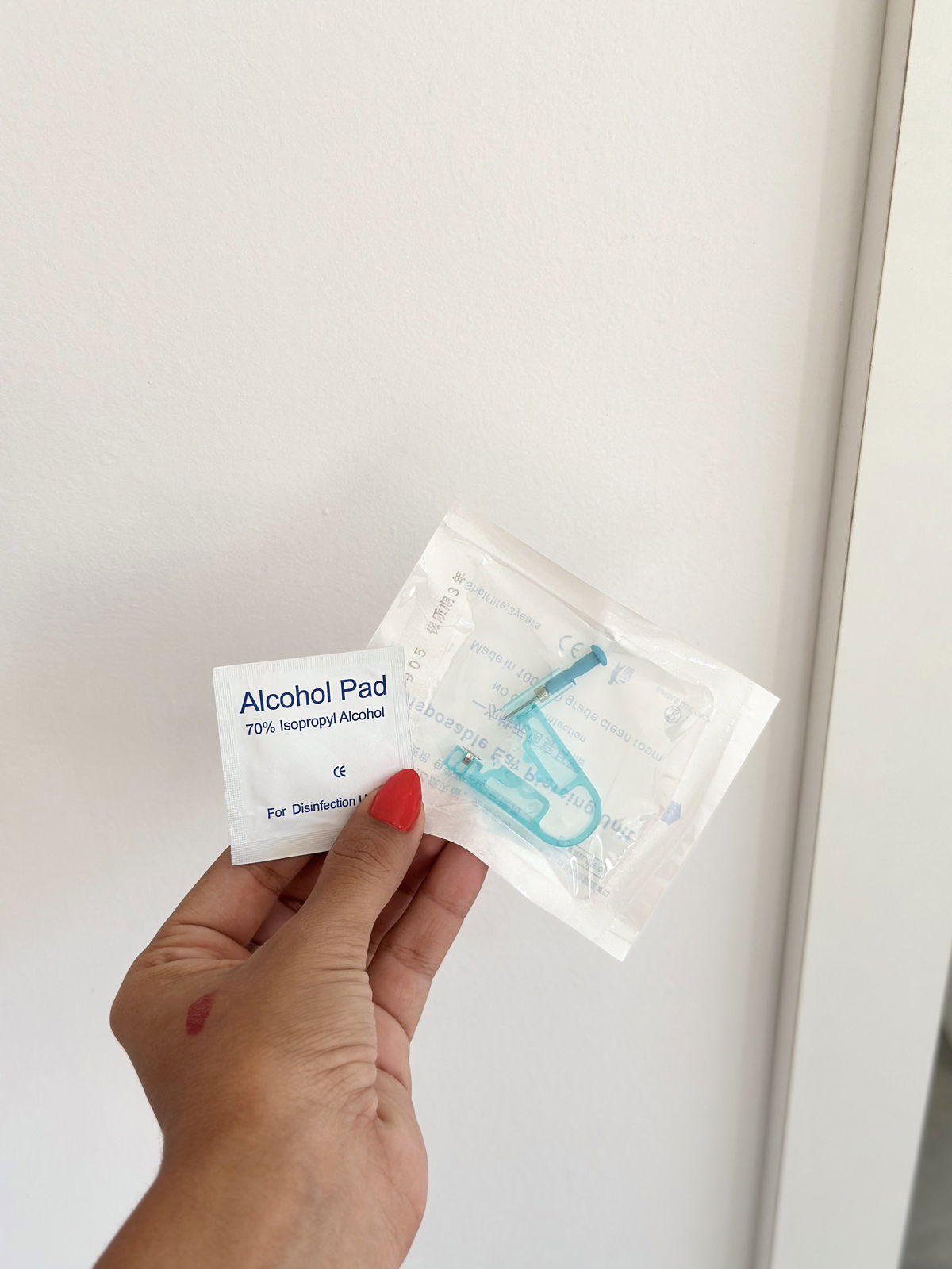 Maquinita perforadora de lóbulo, incluye aro abridor de acero quirúrgico y paño desinfectante.