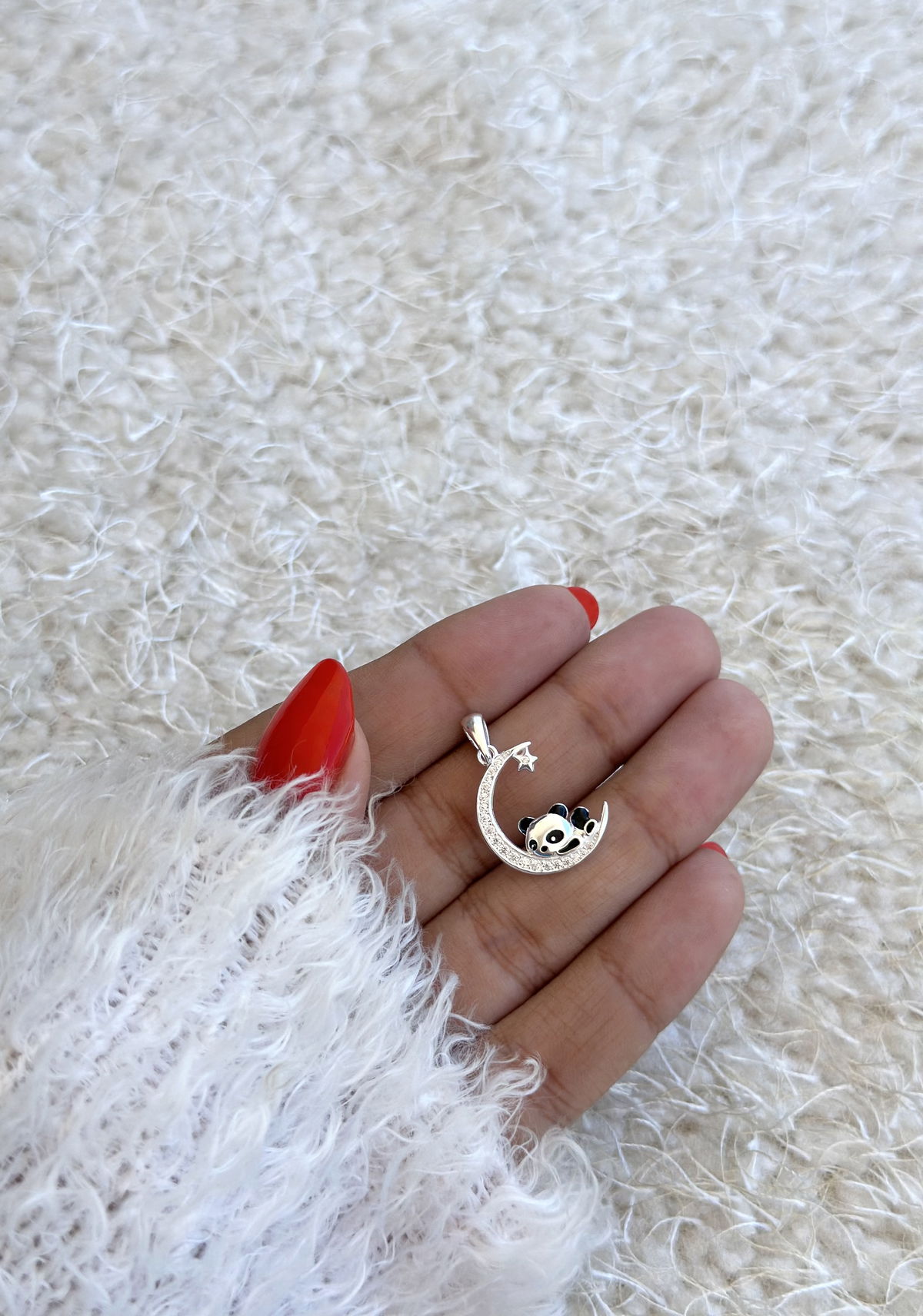 Dije 2cm corazón con panda plata925.