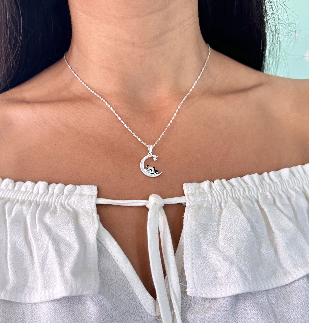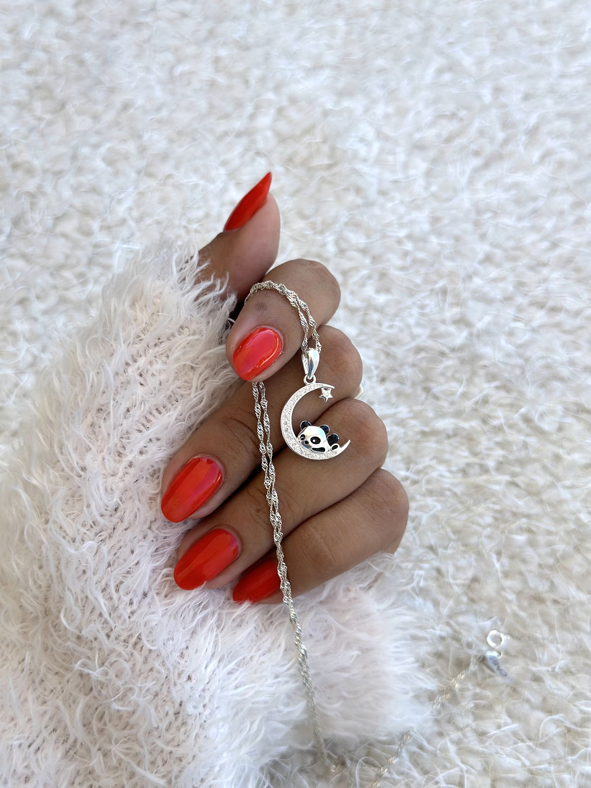 Conjunto cadena Singapur con dije corazón panda plata925.