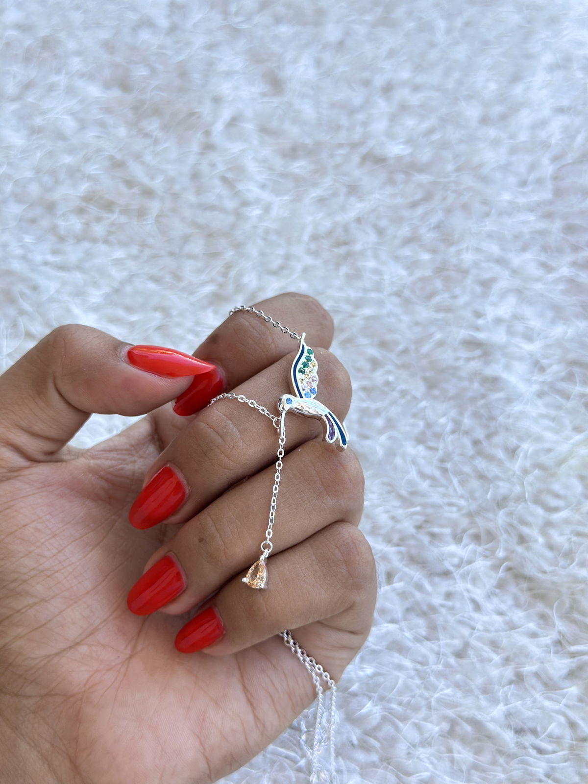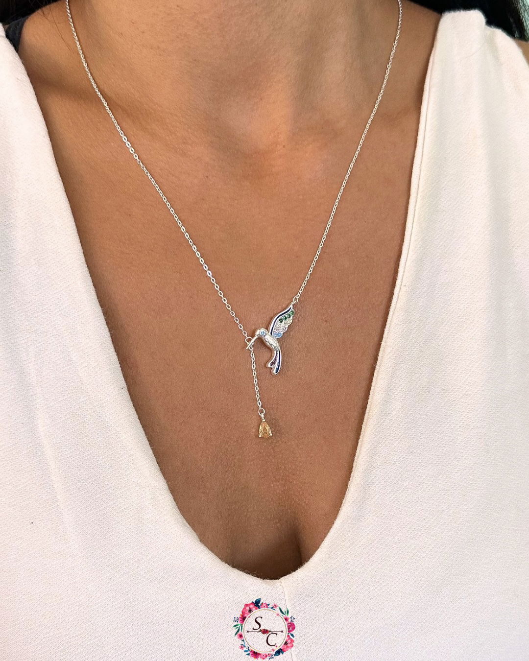 Gargantilla colibrí colores con colgante plata925, 45cm.