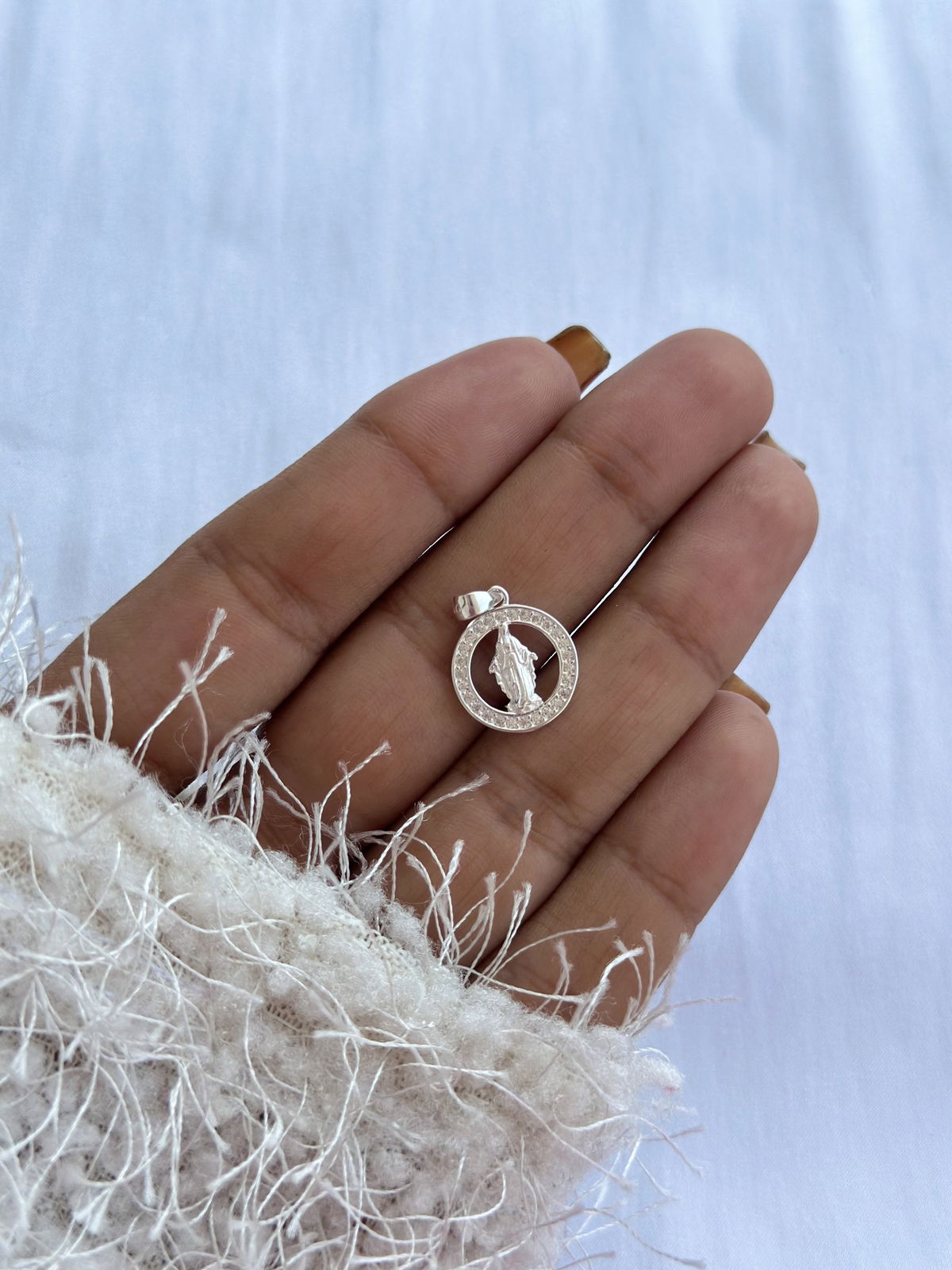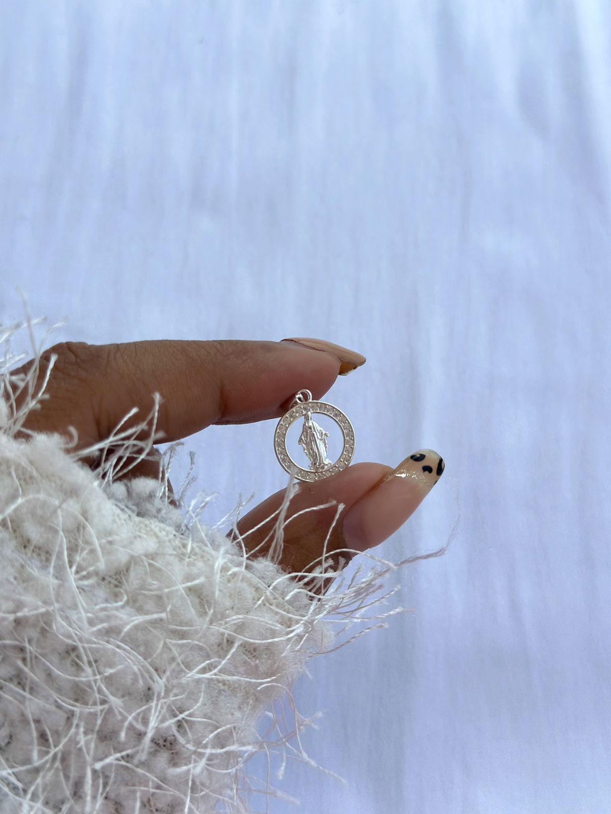 Dije con cubics Medalla Milagrosa 1cm plata925.
