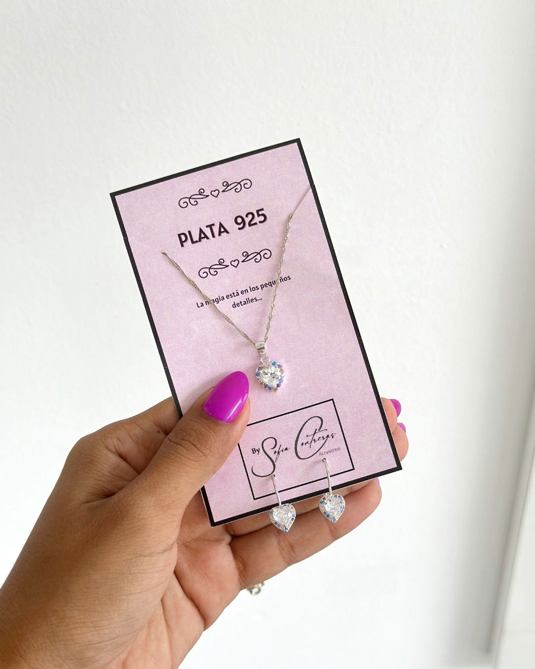 Conjunto plata925 dije corazón y aros.