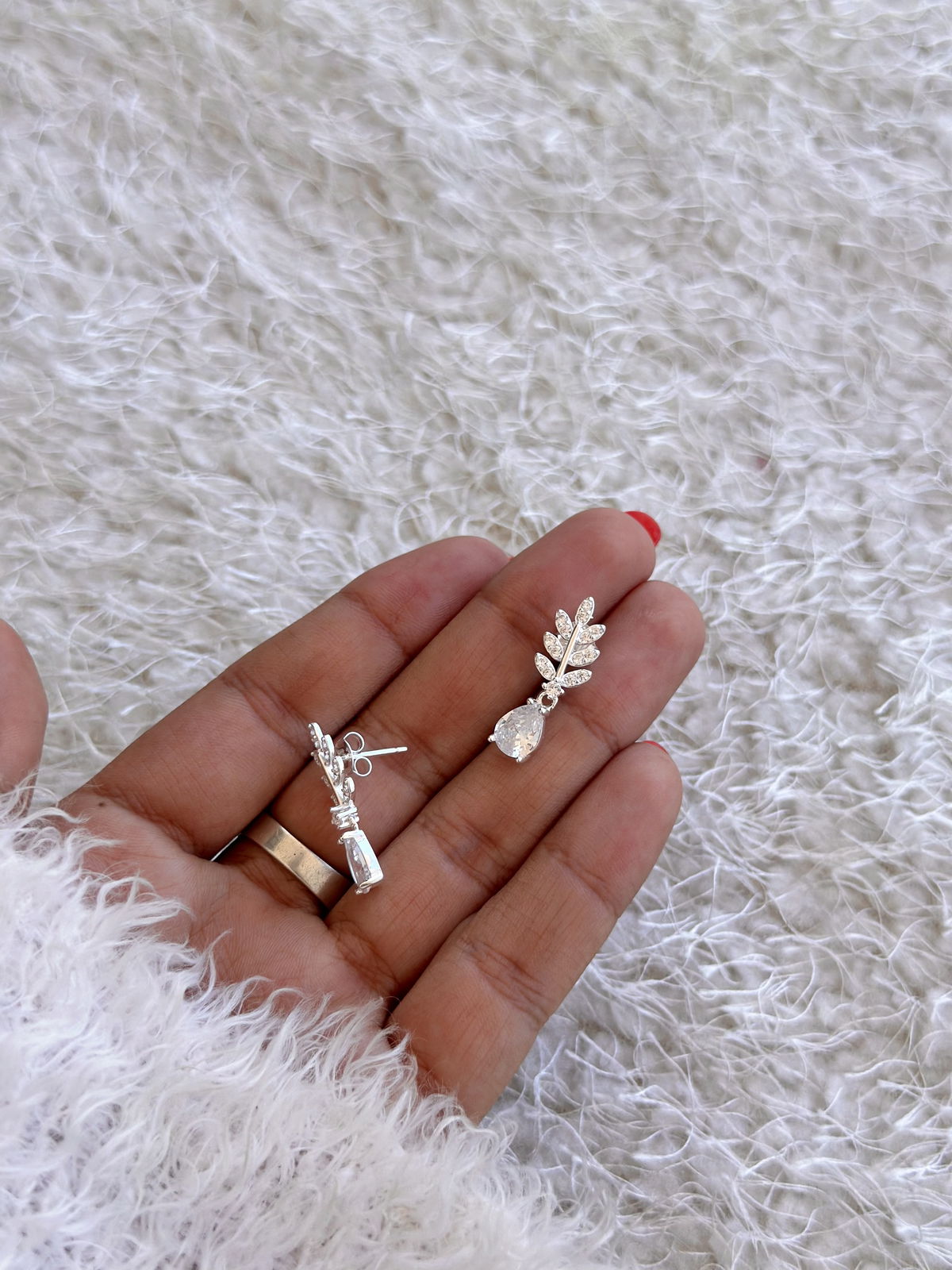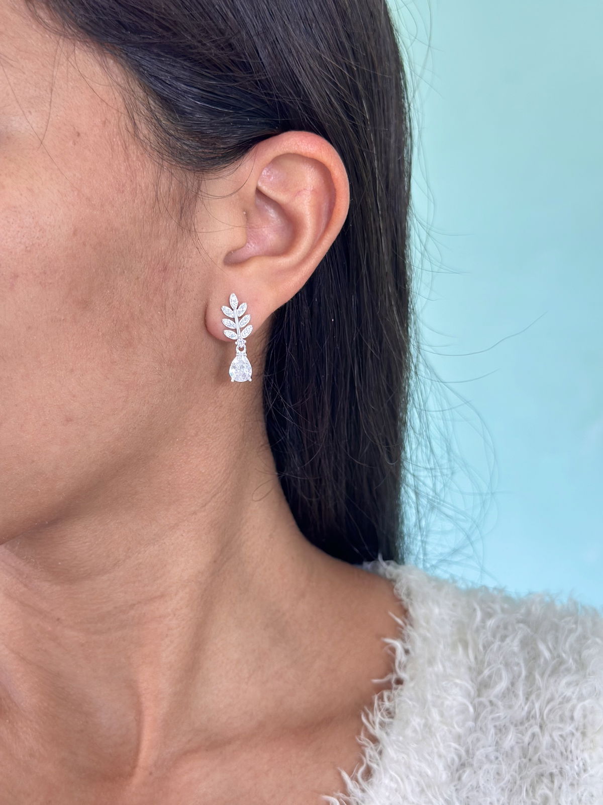 Aro pasante hojitas colgante cubics y micropave plata925, 2,5cm.