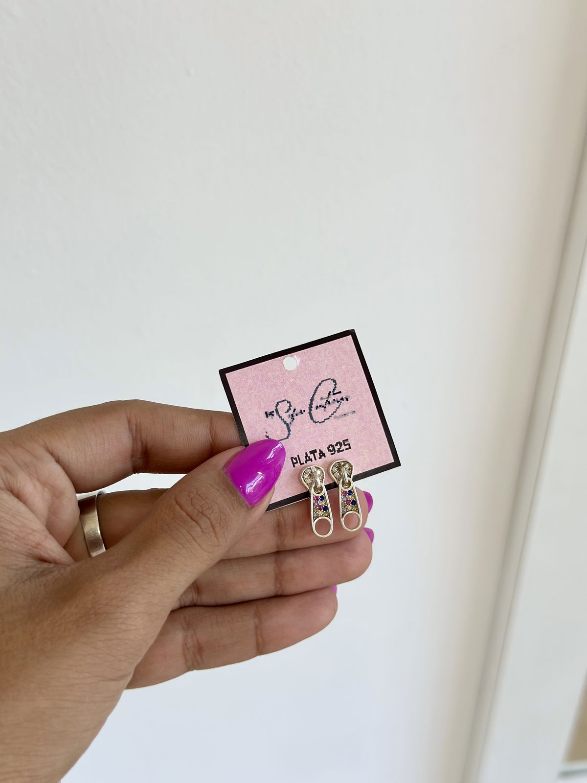 Aro pasante cierre con cubics de colores plata926, 2cm.