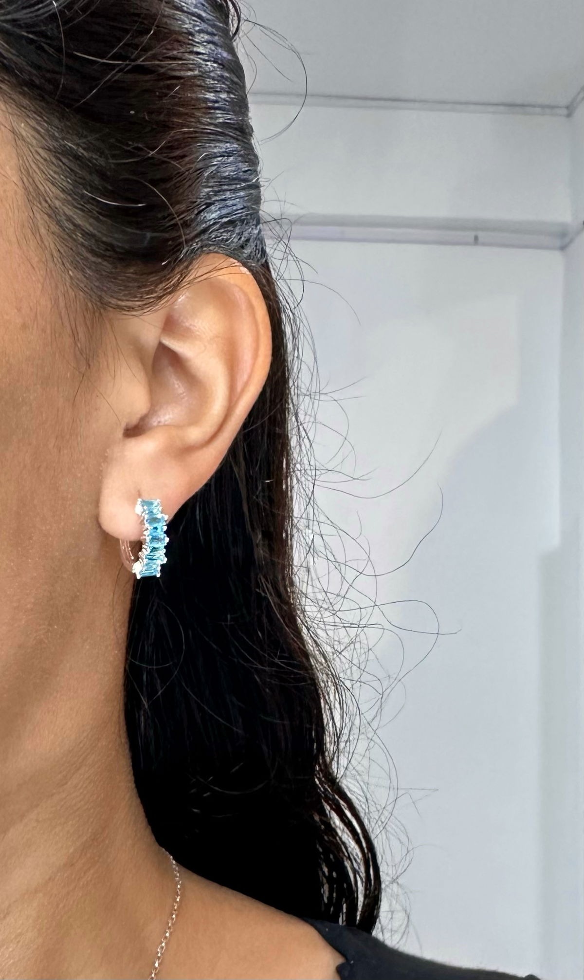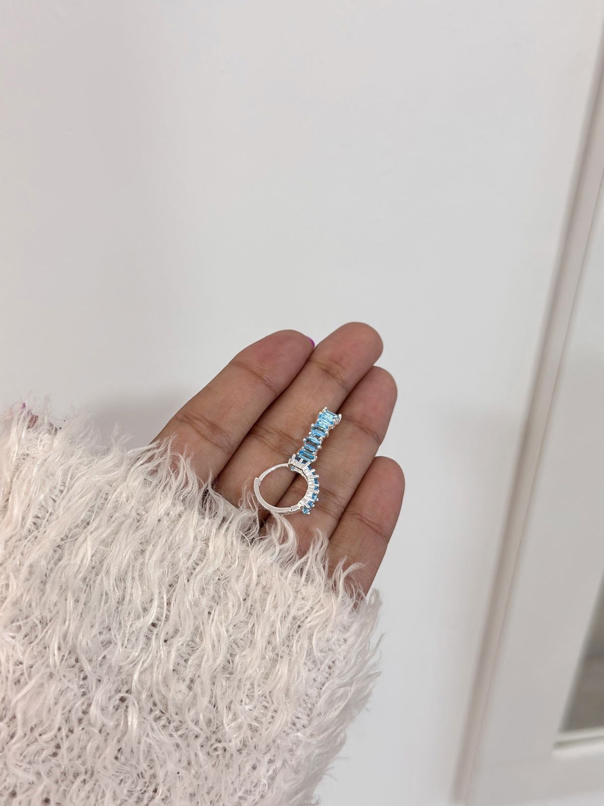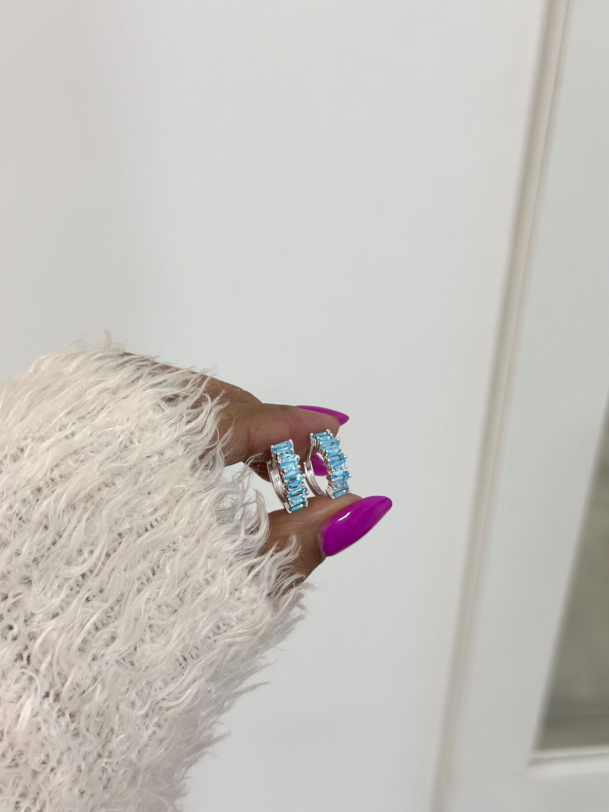 Argollas cubics turquesa 1,5cm acero blanco.