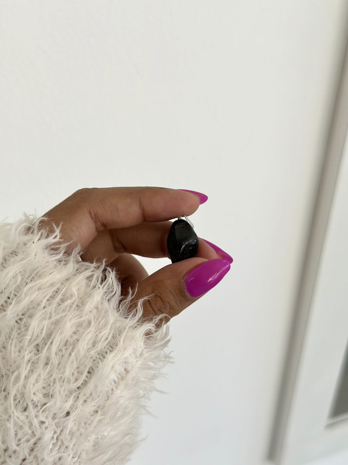 Dije 1,5cm piedra ónix acero blanco.