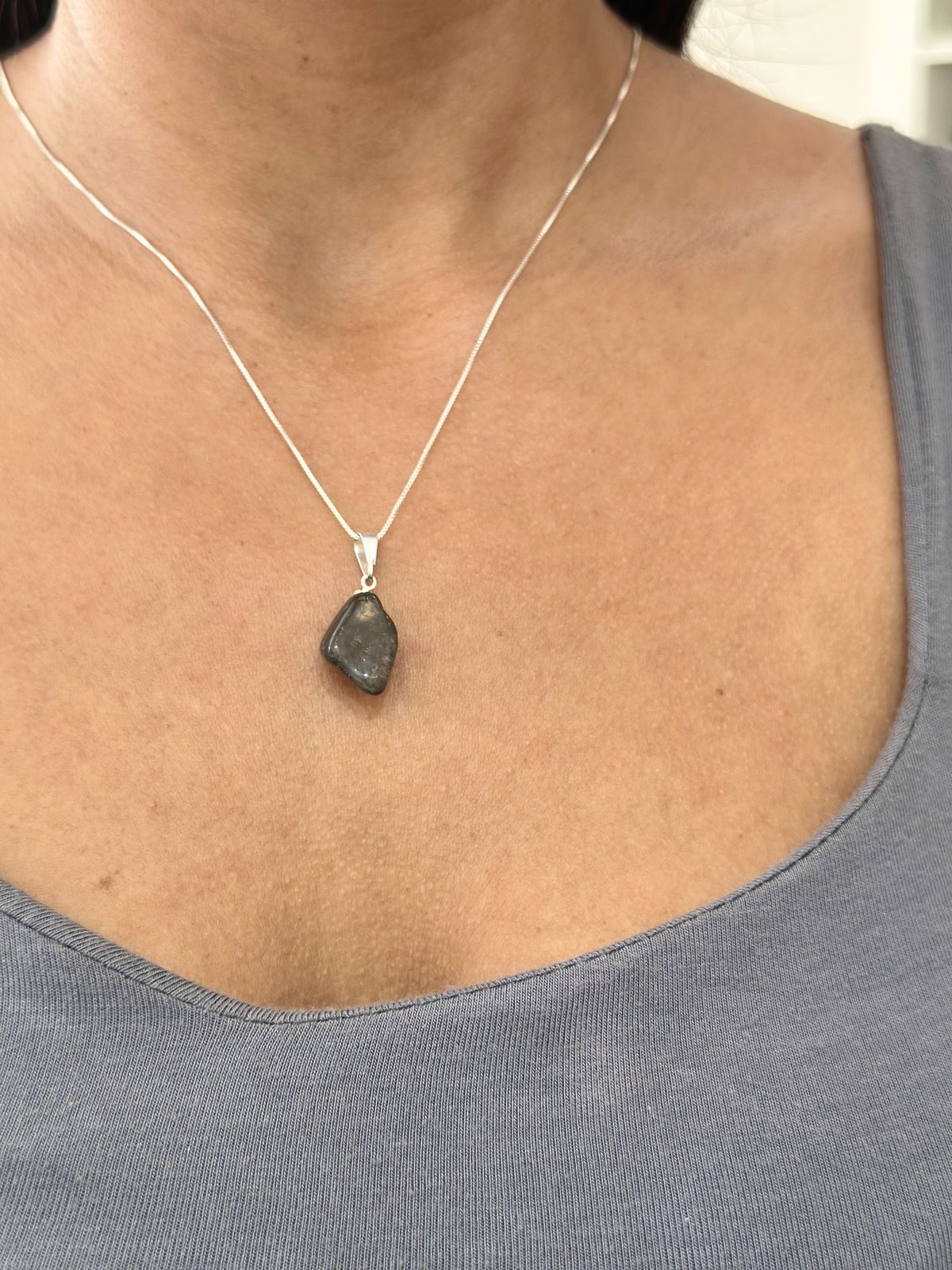 Conjunto plata con dije ónix.