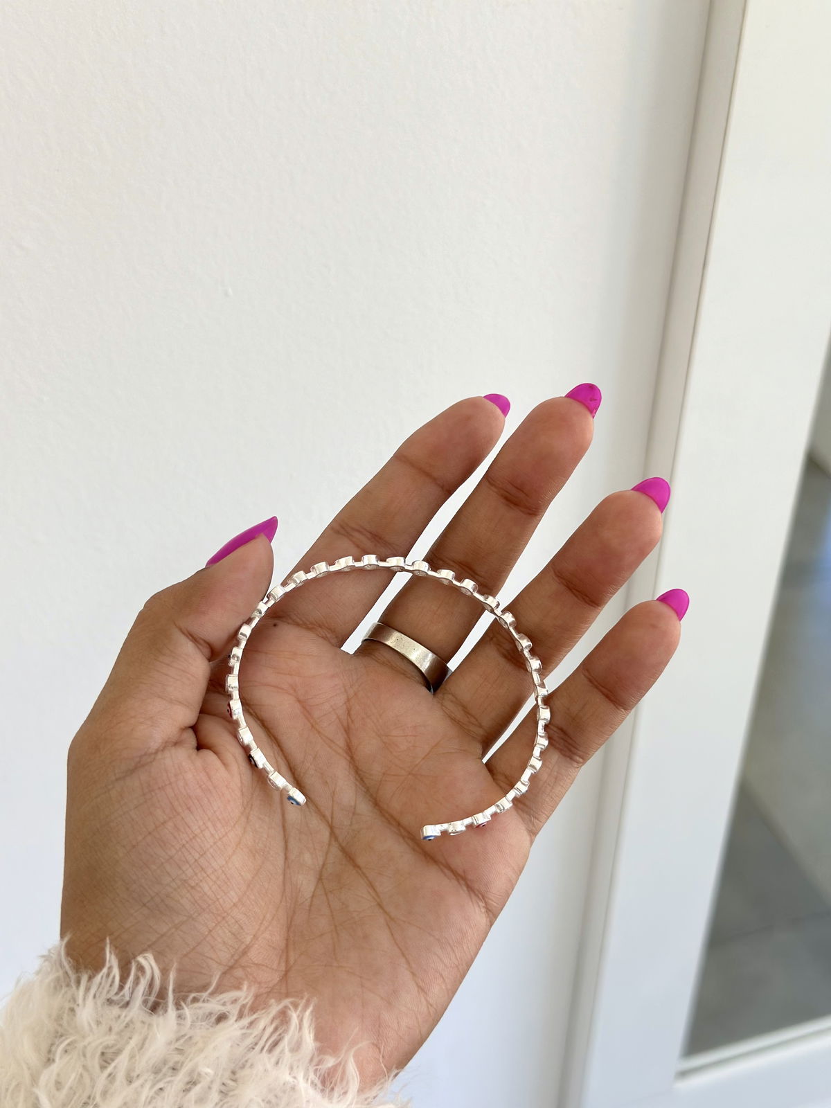 Esclava semi abierta corazones con ojitos turco y cubics plata925, 6,5cm de diámetro.