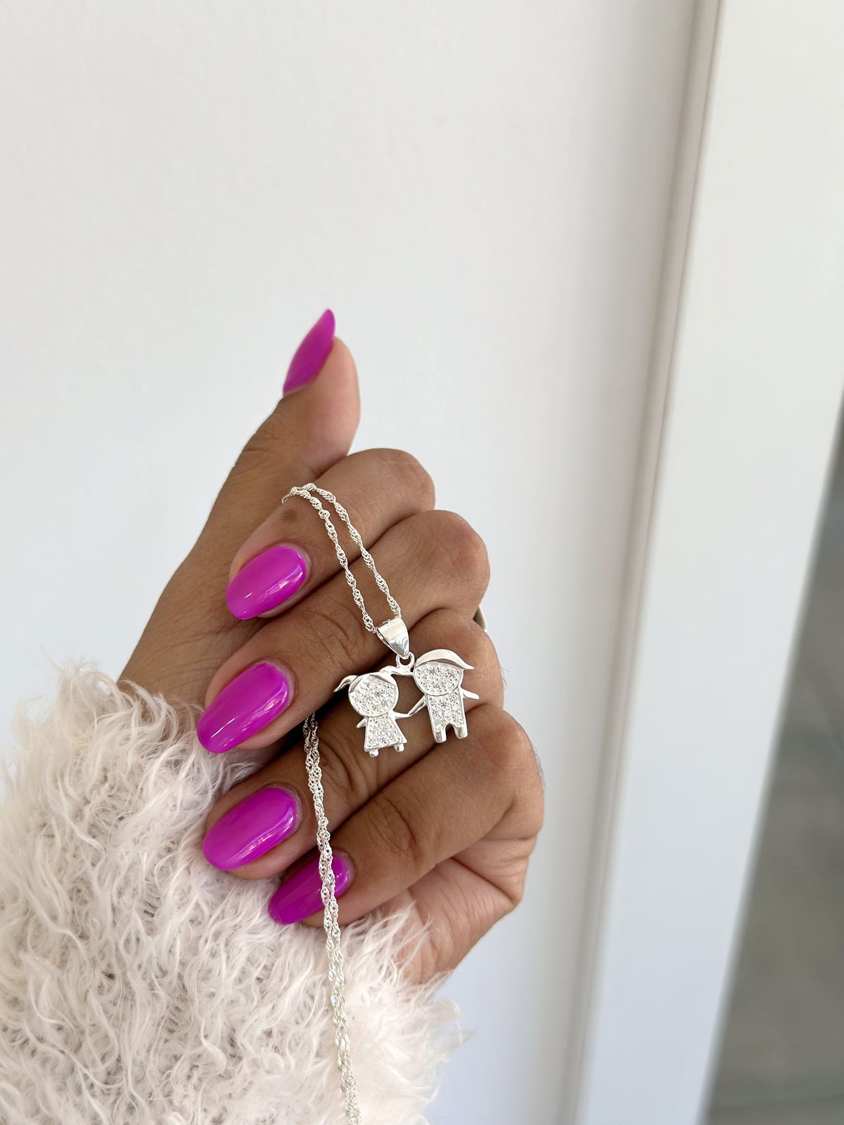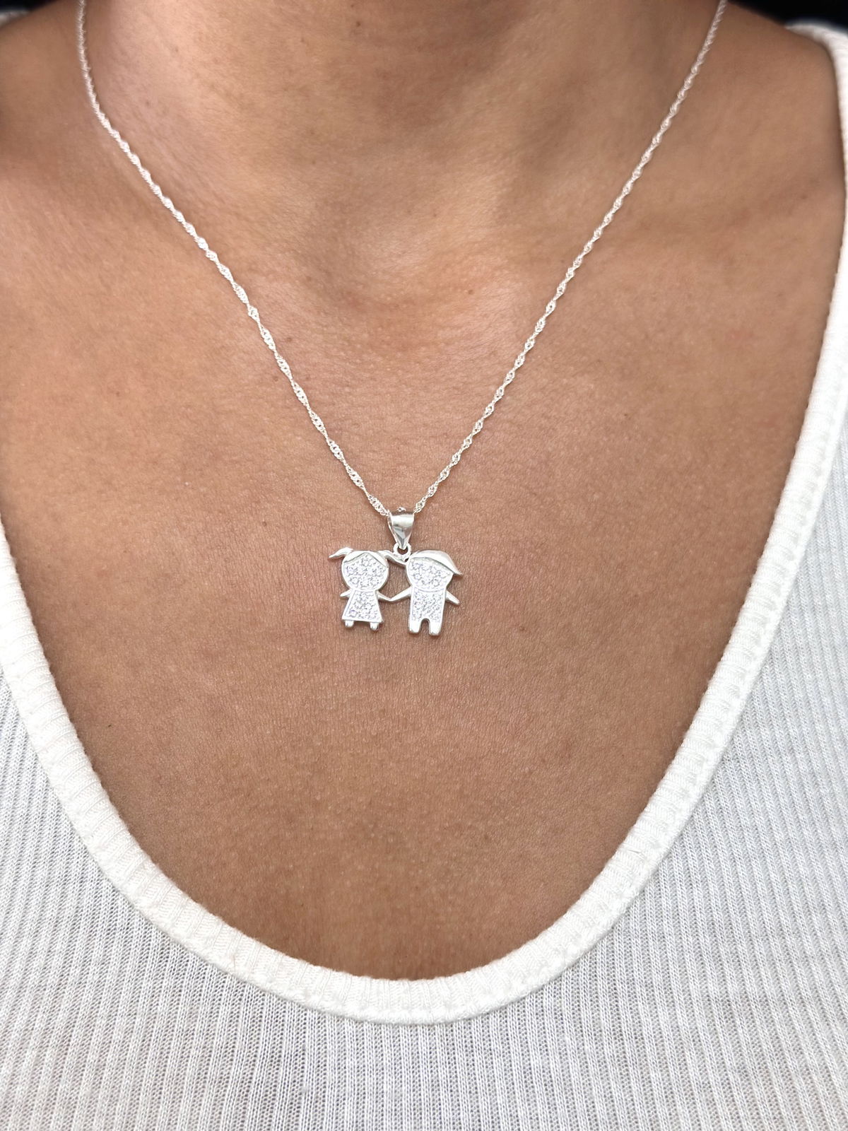 Conjunto cadena Singapur con dije doble nene/nena plata925.
