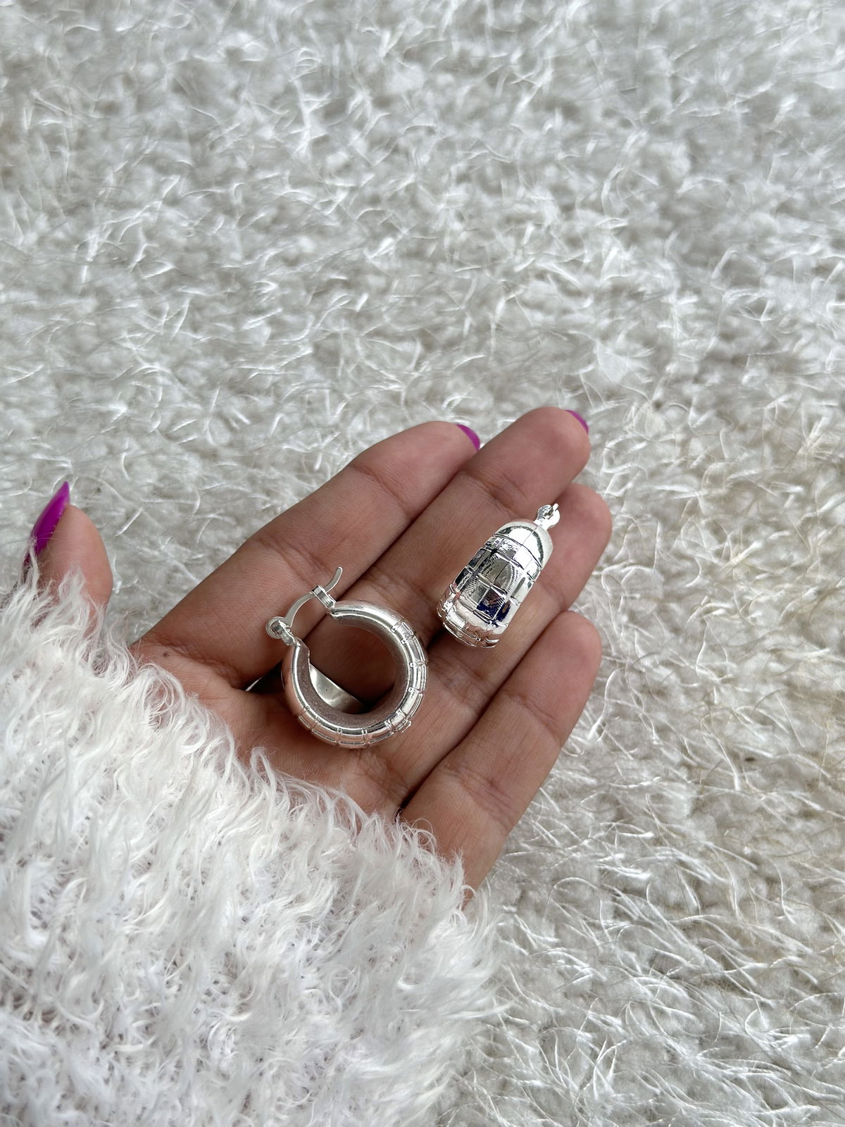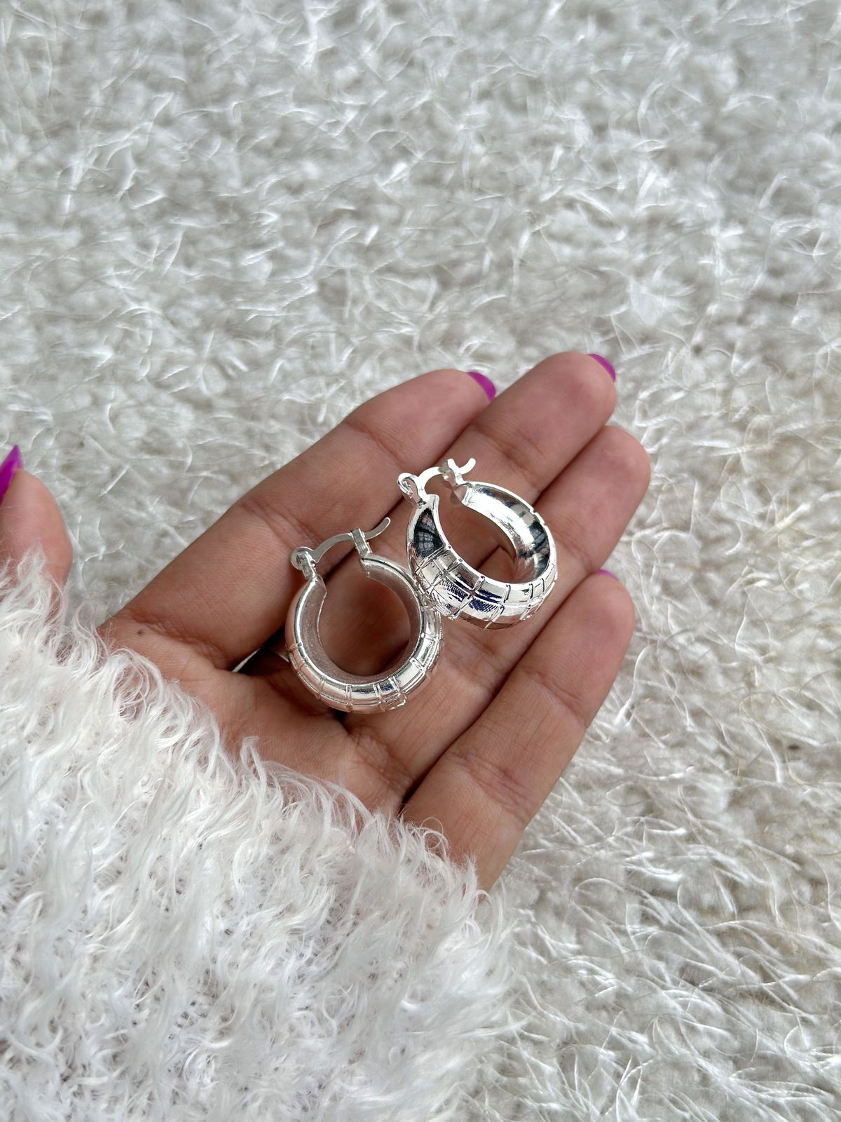 Argollas 2,5cm acero blanco inflado.