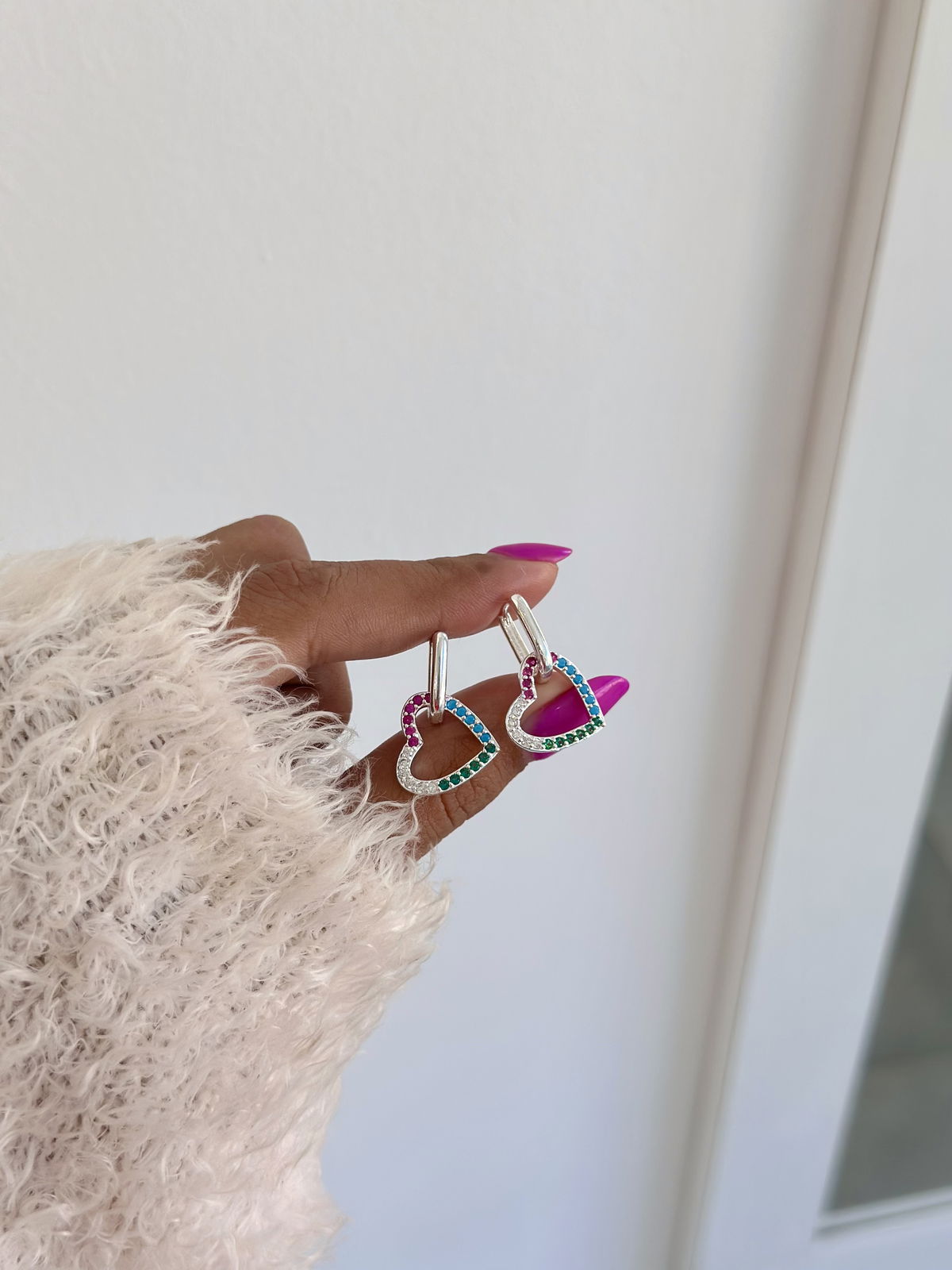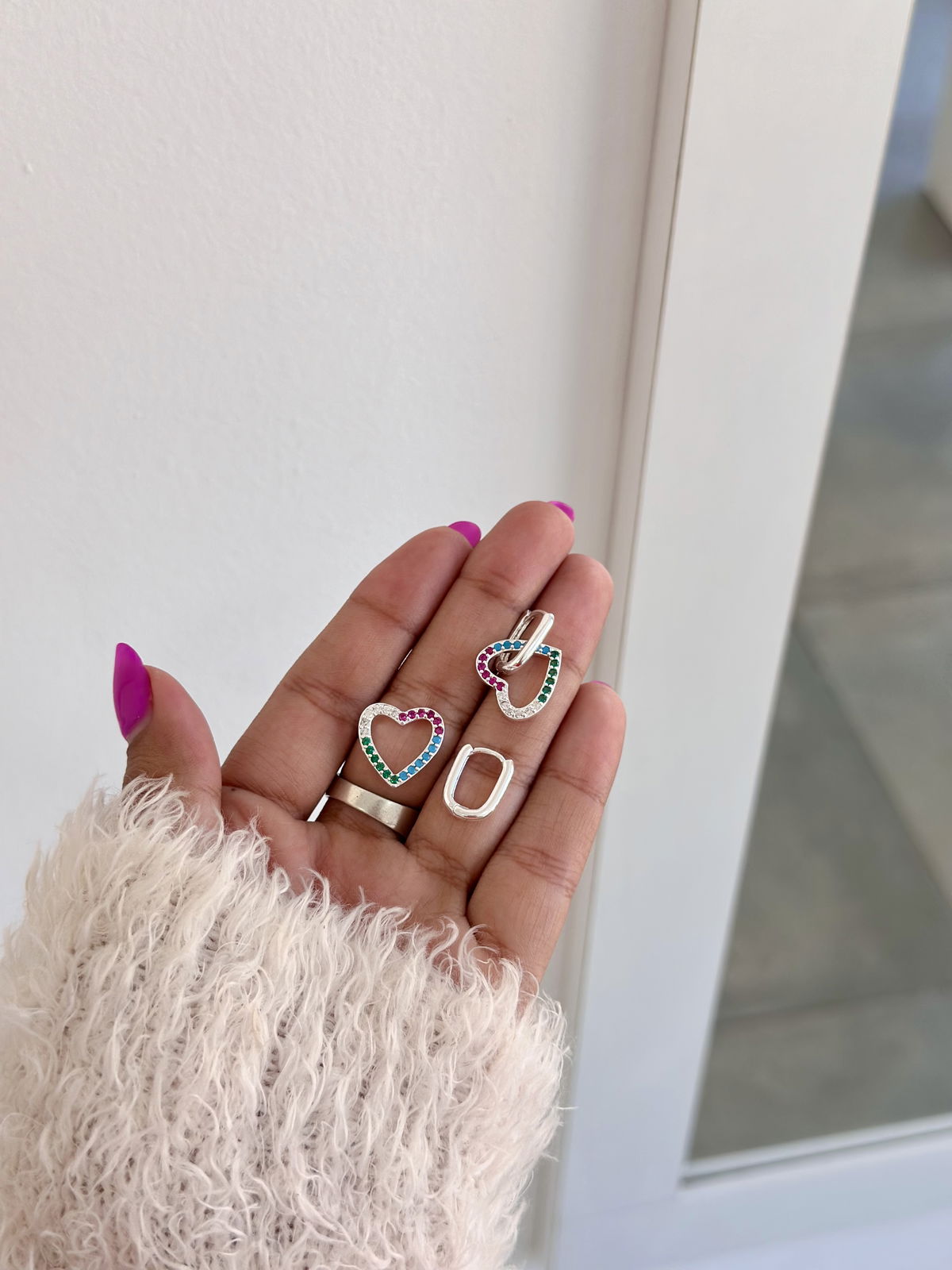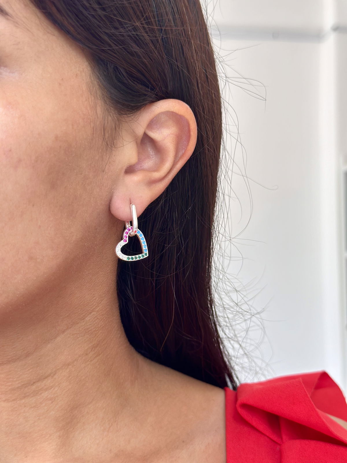 Argollas cierre clip 1,3cm con dijes corazones colores desmontables acero blanco.