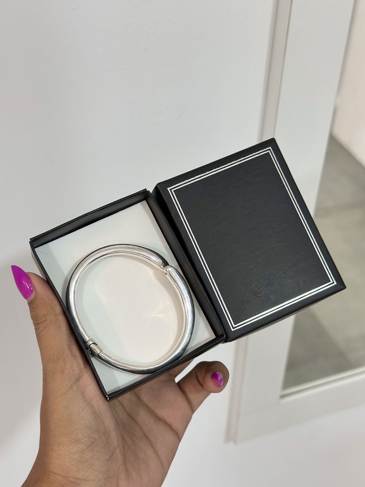 Esclava tipo pinza cruzada Plata925 inflada lisa, 6,3cm.