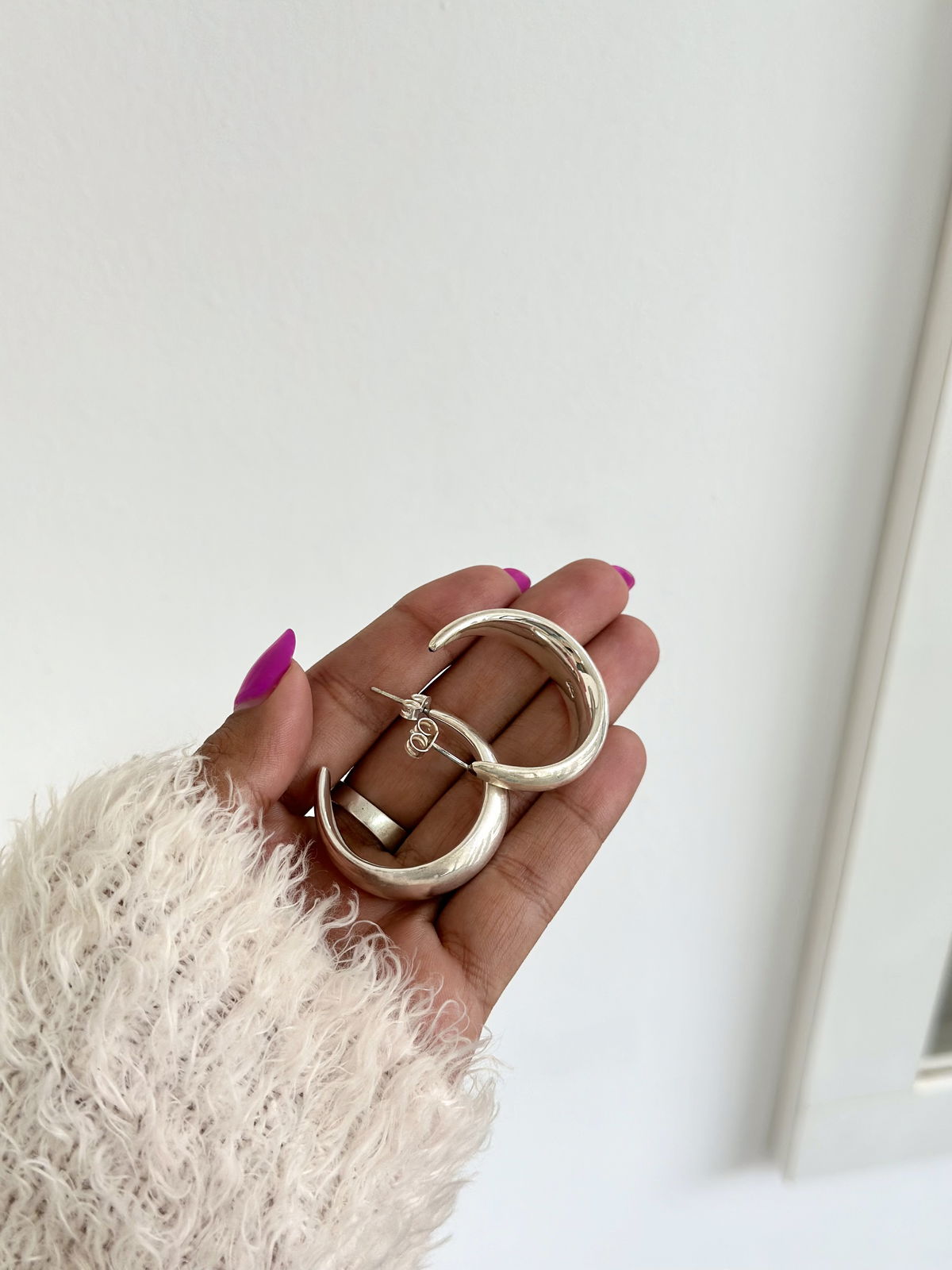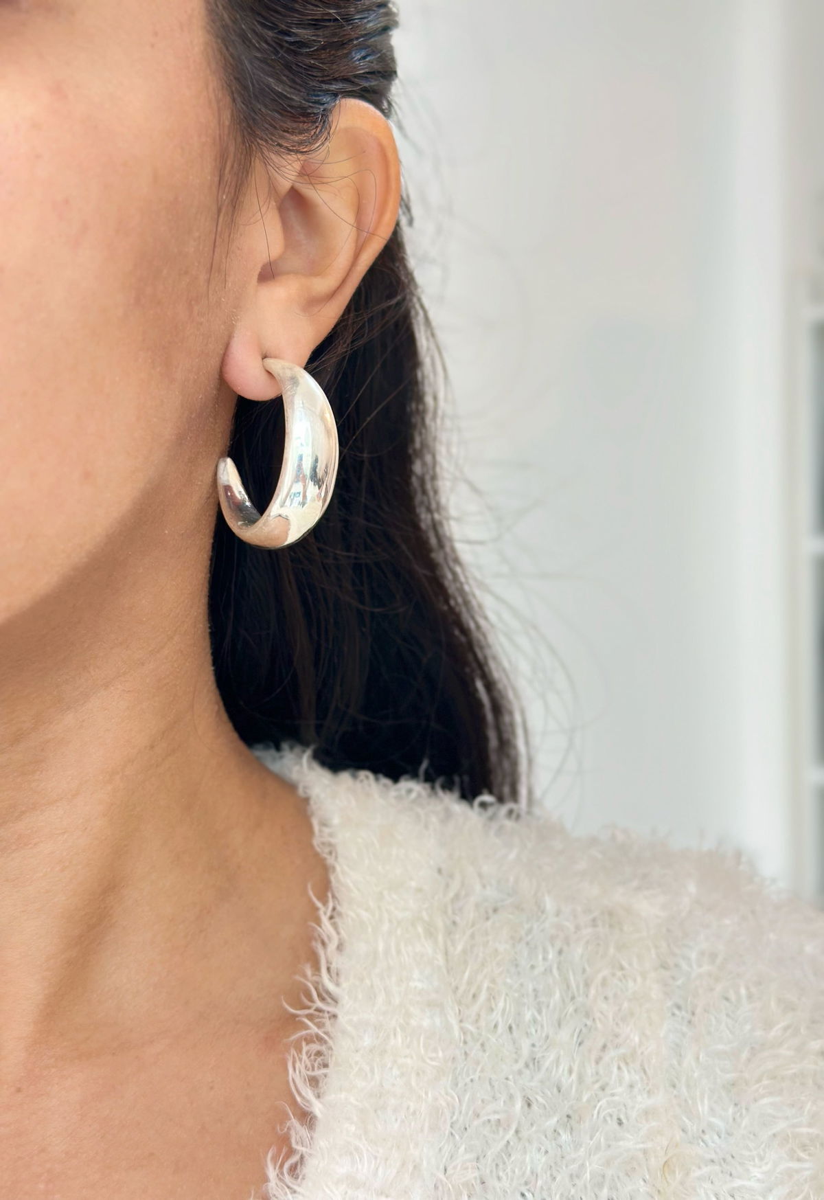 Aro pasante inflado liso 3,4cm plata.