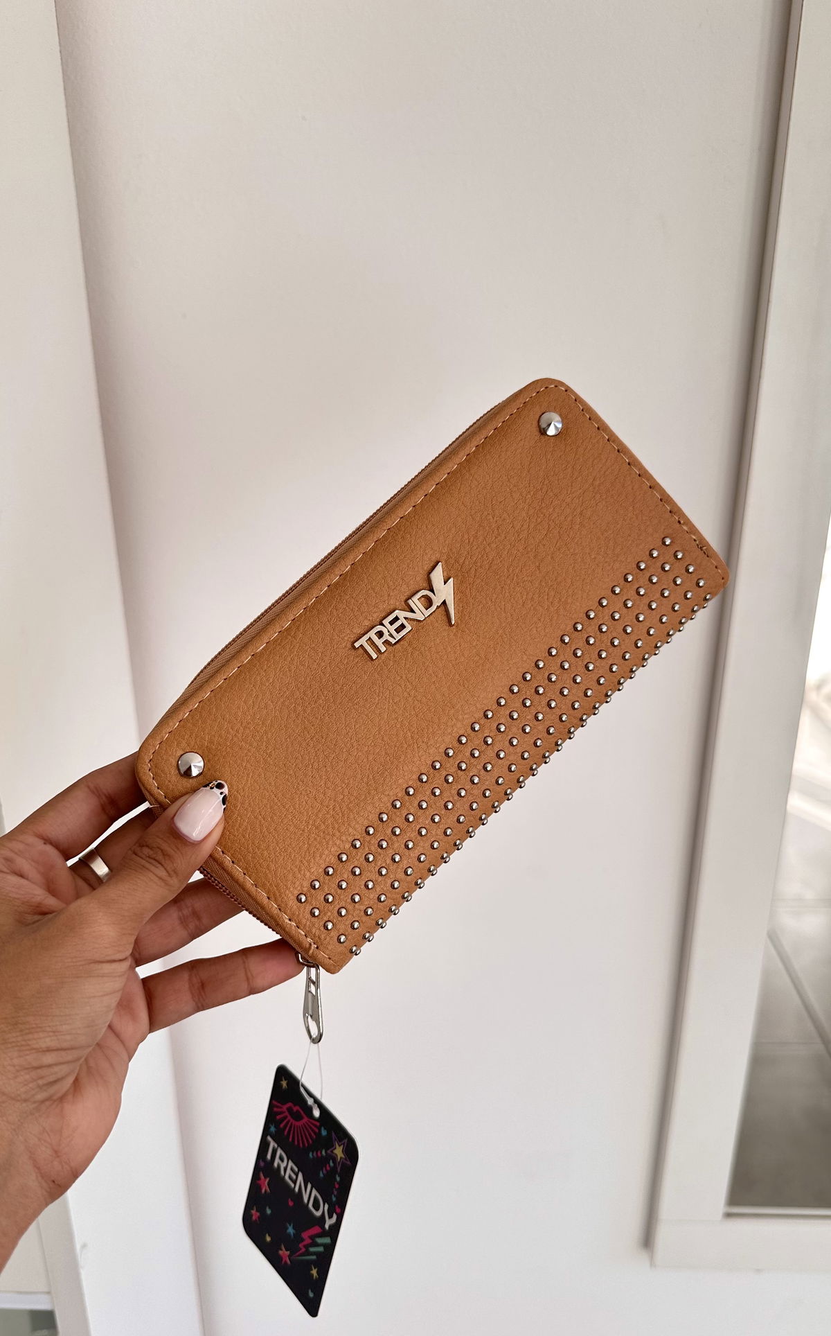 Billetera 1 cierre, 18x10 con tachas, trendy.