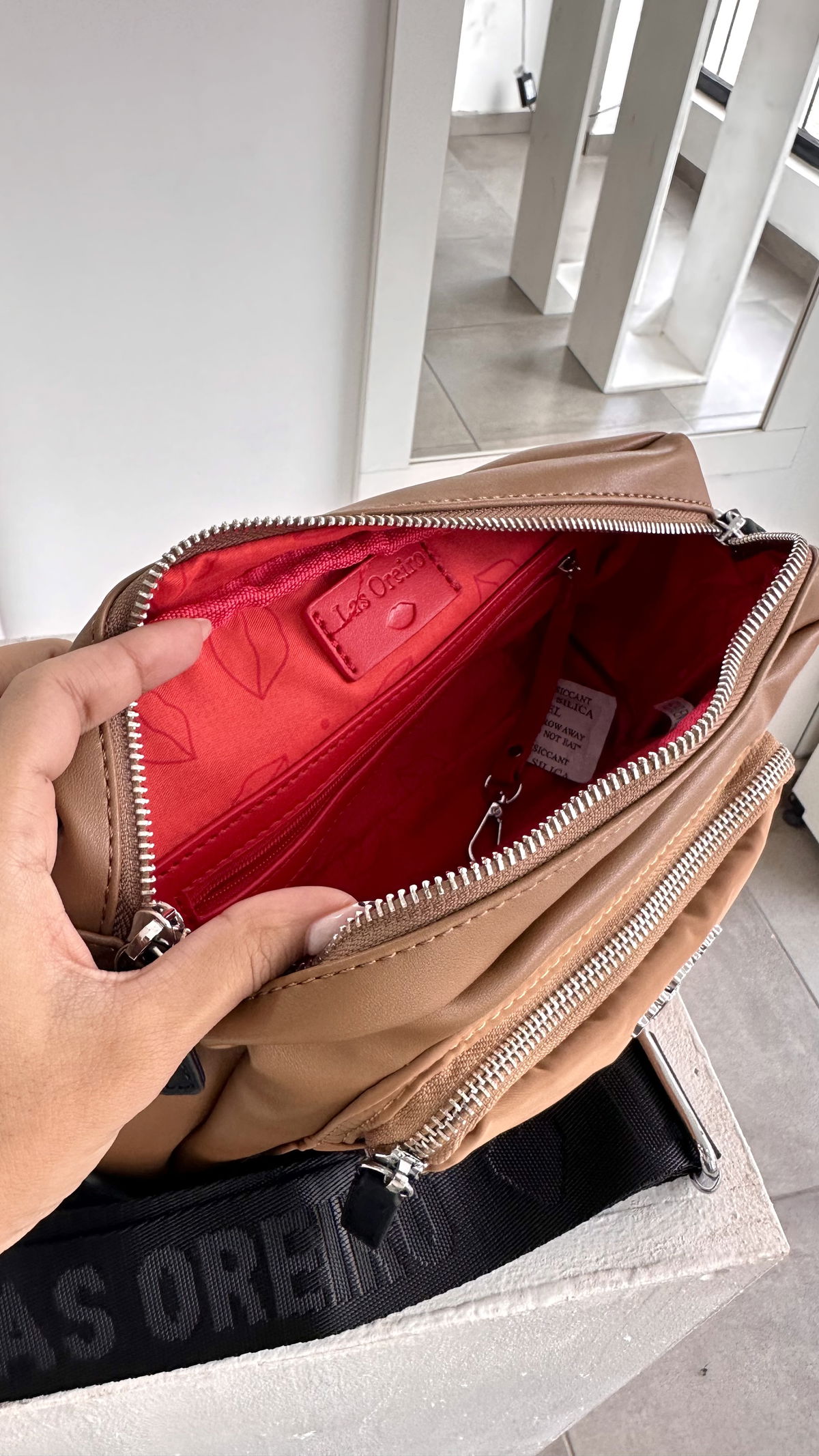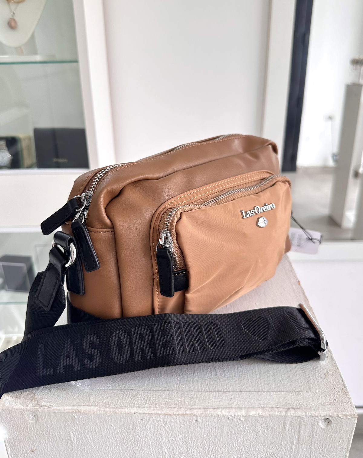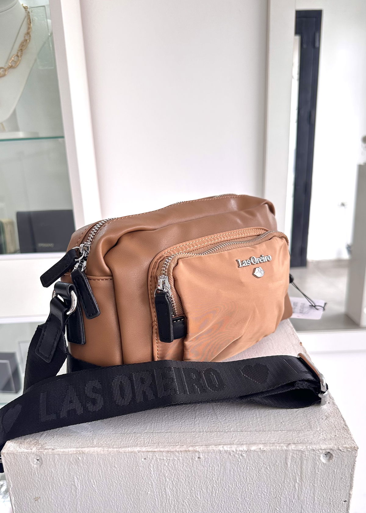 Bandolera las oreiro cuero pu, alto 15cm, 25cm ancho, 6cm de profundidad, doble cierre, interior forrado con cierres y compartimentos.