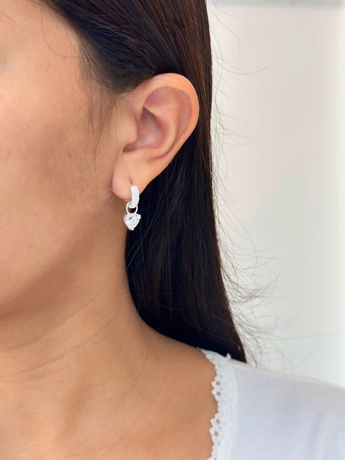 Argollas cierre clip 1,2cm con dije corazón desmontable plata925.